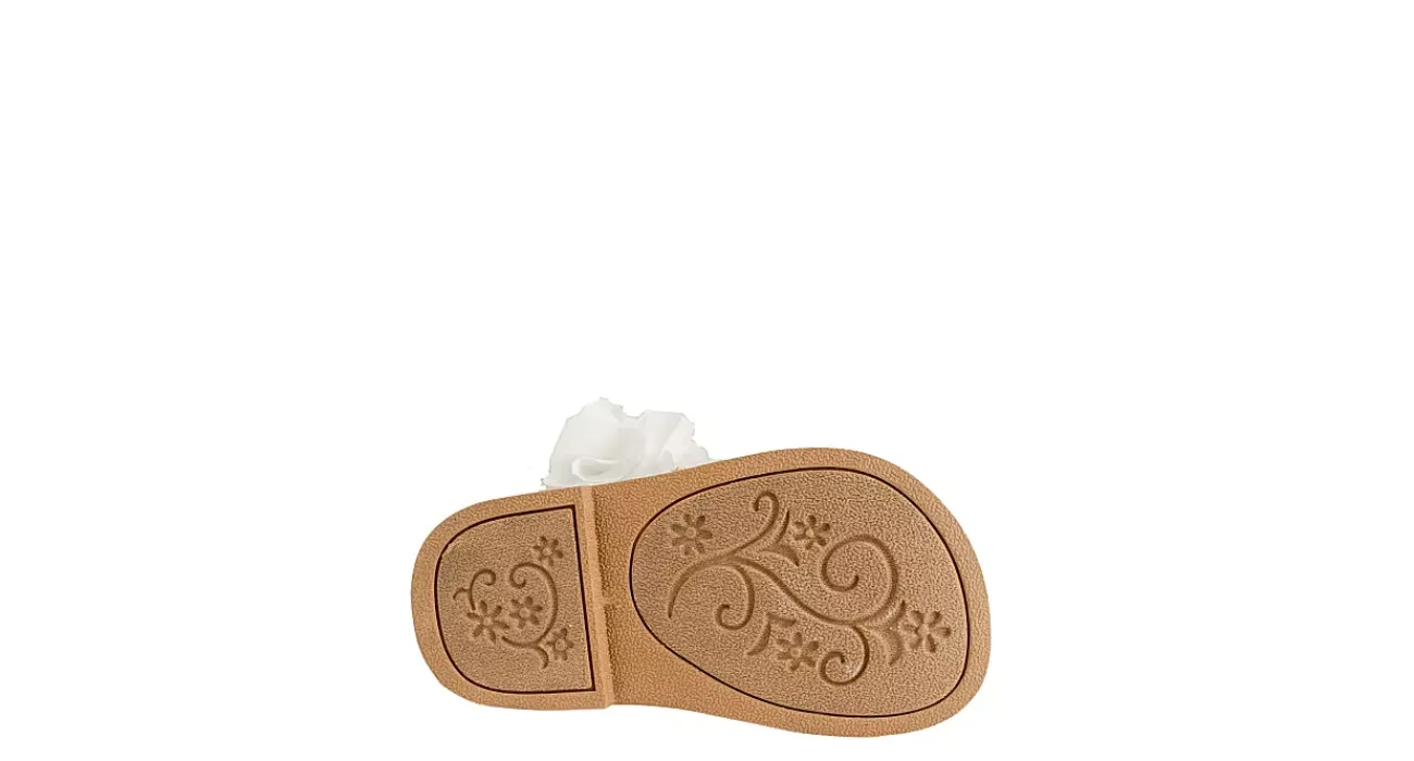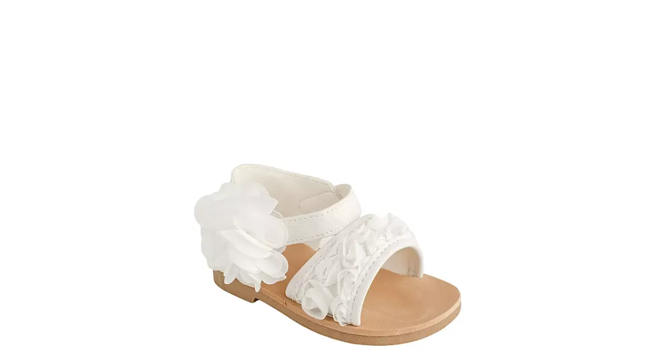 Your baby girl will look pretty as a petal in the Tiffany infant girls’ sandal from Baby Deer. These cute sandals feature a faux leather upper decorated with chiffon floral accents, a tiny block heel, and a hook-and-loop strap for a secure fit. An EVA footbed cushions her little feet for a comfy all-day feel.