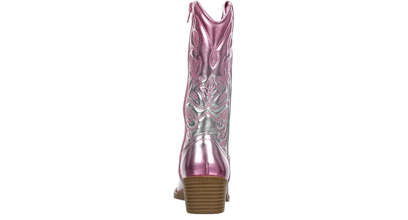 Let your child strut their stuff in these stylish Western boots. With a gradient metallic finish, a stacked heel, and a side zip closure, these boots are both fashionable and comfortable.