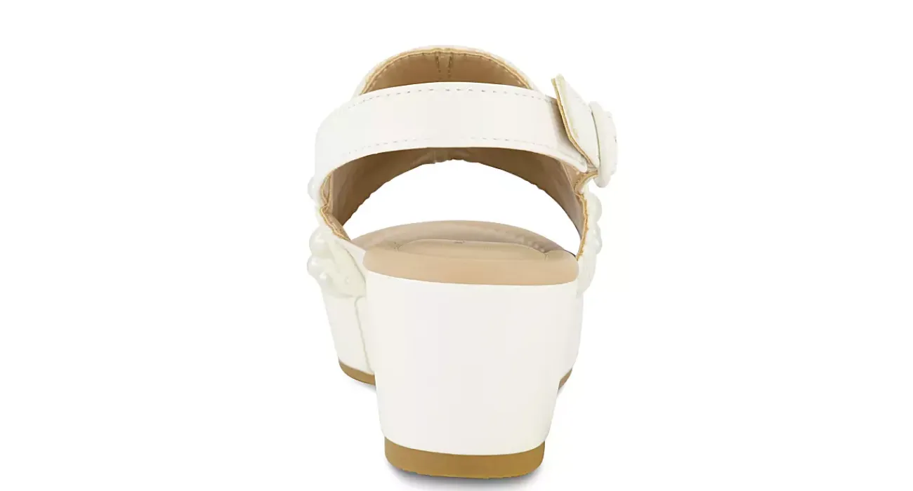 Her summer looks even better with the Marren Weave girls’ wedge sandal from Marc Fisher. Featuring a woven upper with imitation pearls for extra style, this slingback strap sandal works with dresses or shorts. The footbed cushions her foot, while the 2″ heel adds stable lift.
