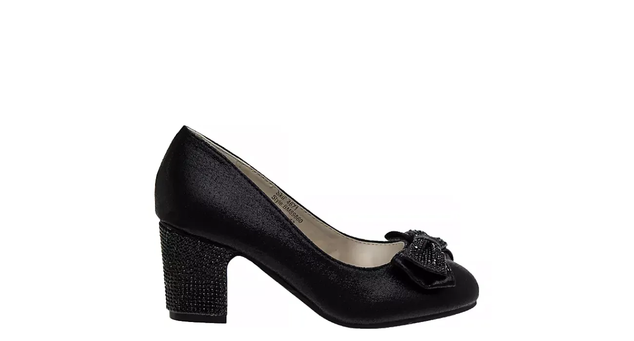 She’ll stand tall in the Sparkle Studded Bow girls’ dress pump from Badgley Mischka. With a shimmery synthetic upper featuring a jeweled double bow accent at the toe for extra flair, this slip-on shoe is almost magical in its design. The footbed soothes her foot while the 3″ heel adds even more rhinestones for an elegant lift to any outfit.