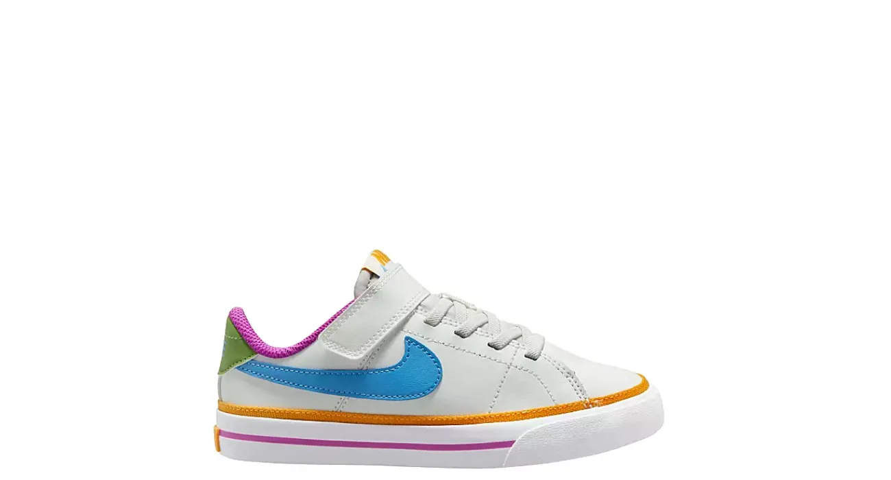 Streetwise, but classic the Nike Court Legacy girls’ sneaker upholds tennis history with modern style. With a color-blocked leather upper and canvas trim around the midsole, this lace-up sneaker also features a hook & loop ankle strap for a secure fit. The herringbone pattern on the outsole ensures great traction on the court or off.