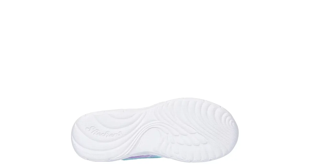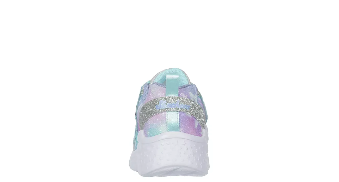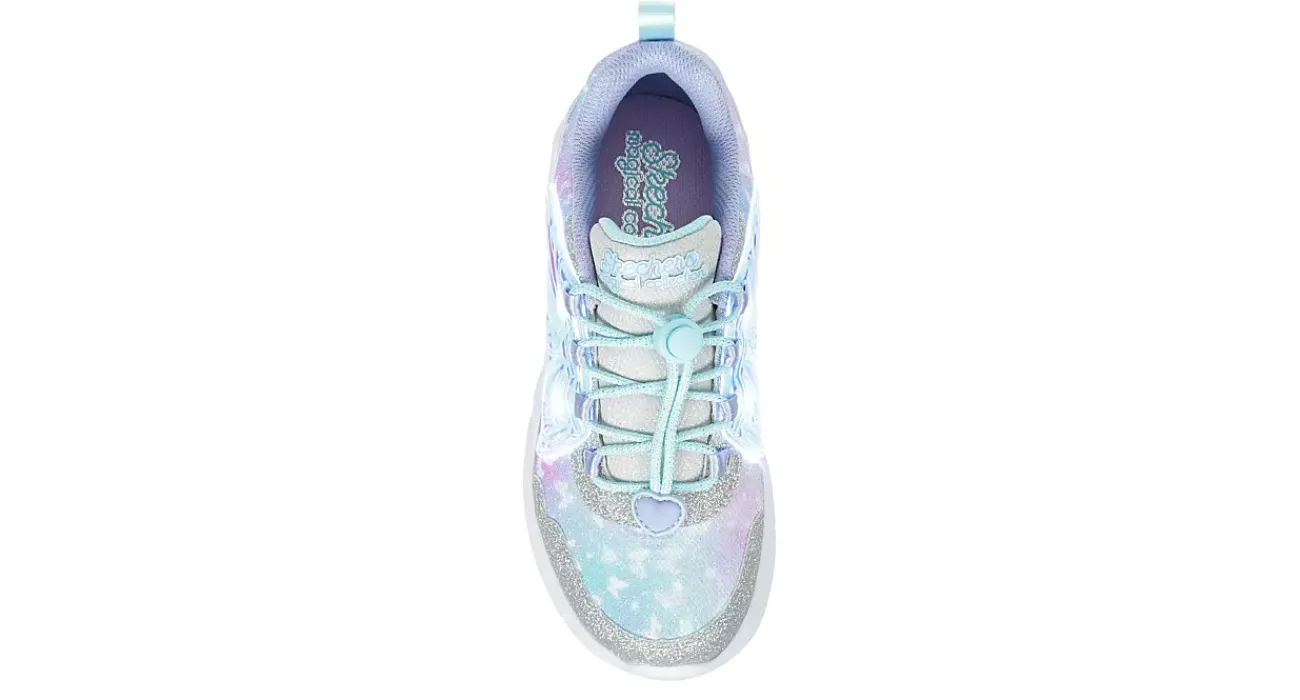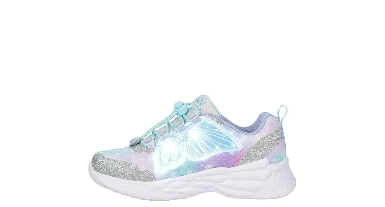 Make magical style her thing in the Skechers Dream Racer – Wing Brites light up sneaker. Featuring a sparkle mesh & synthetic upper with attached wing tech, this stretch laced sneaker has a toggle closure for a secure fit. The insole comforts her foot, while the outsole provides flexible traction.