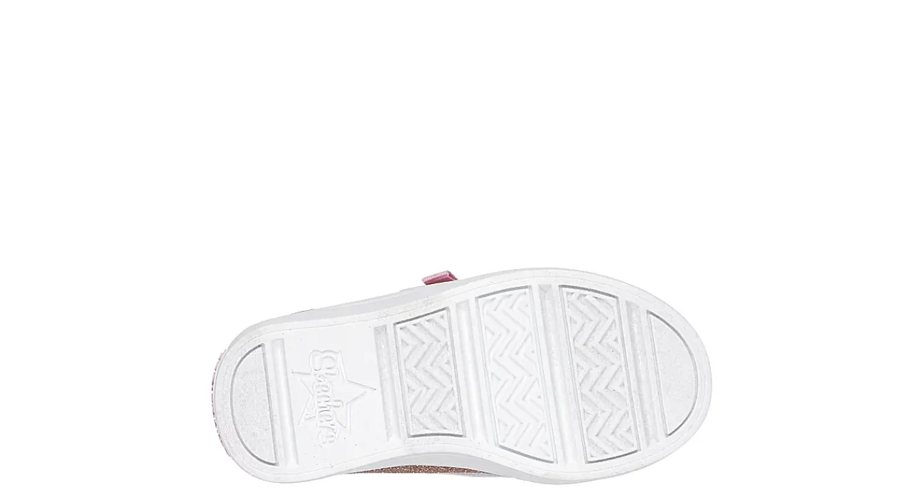 Puffs of tulle + your baby equals adorable in the Skechers Twinkle Toes: Twi-Lites 2.0 – Tutu Cute infant girls’ lighted sneaker. Featuring a glittery synthetic upper with Twinkle Toes® embellished toe cap, this rose gold sneaker has a frilly double bow detail that will delight you both. The cushioned insole comforts her little feet, while the outsole provides flexible traction.
