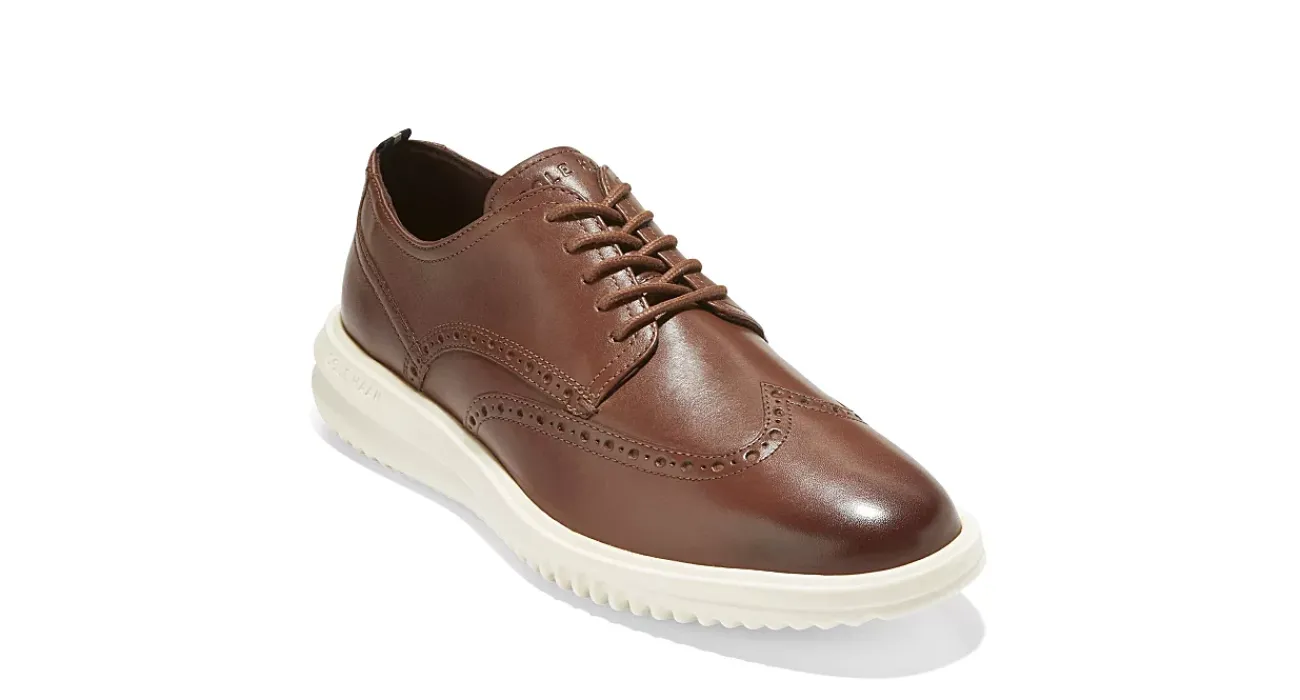 Just because you’re walking, doesn’t mean you can’t look your best in the Cole Haan OriginalGrand Wingtip men’s oxford. With a smooth leather upper featuring brogue accents for extra flair, this lace-up shoe has a natural flexibility and smart design. The EVA midsole & Grand.OS technology provide responsive cushioning that equals less fatigue.