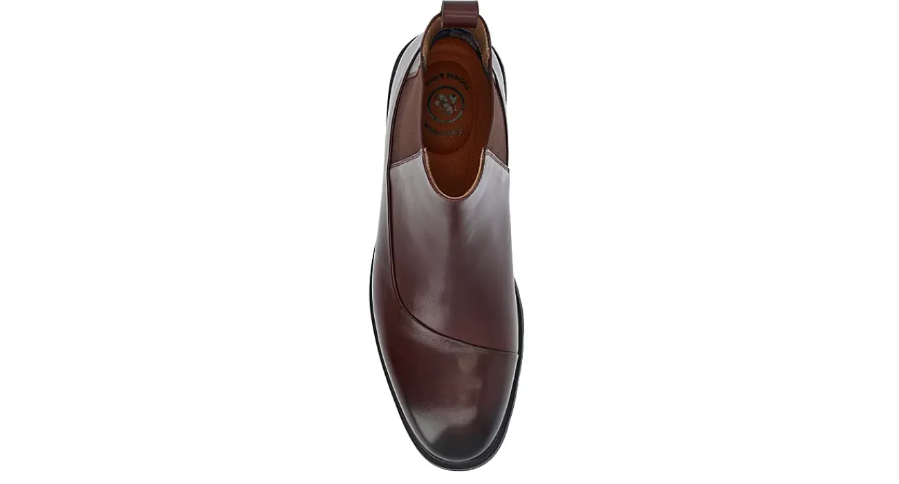 Stay sharply interesting in the Thomas & Vine Hanford men’s boot. Featuring a leather upper with a stylish, asymmetrical toe design, this Chelsea boot also has a rear pull tab. The Tru Comfort Foam™ footbed cushions every step while the flexibe outsole adds durability.