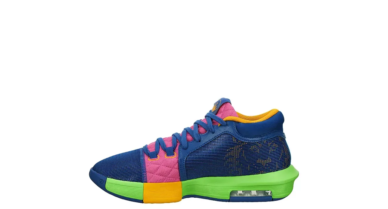 Show your flair for scoring in the Nike LeBron Witness 8 men’s basketball shoe. With a breathable mesh upper featuring a padded collar & diamond-stitched quilted tongue for extra comfort, this mid-length lace-up sneaker has webbing to support your forefoot. The Max Air unit & foam midsole cushion every step, while the split rubber outsole flexes to aid agility.