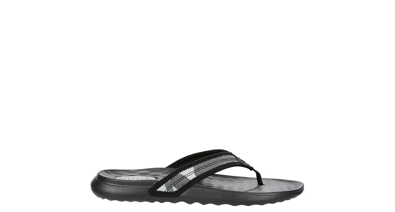 A treat for the whole foot – the Myers men’s flip flop sandal from HEYDUDE is a hit. With a faux leather upper with foam cushioning for comfort, this thong sandal has a soft textile toe post. The DUDEWAVES TECHNOLOGY improves breathability by enhancing airflow, while the lightweight outsole offers flexible traction.