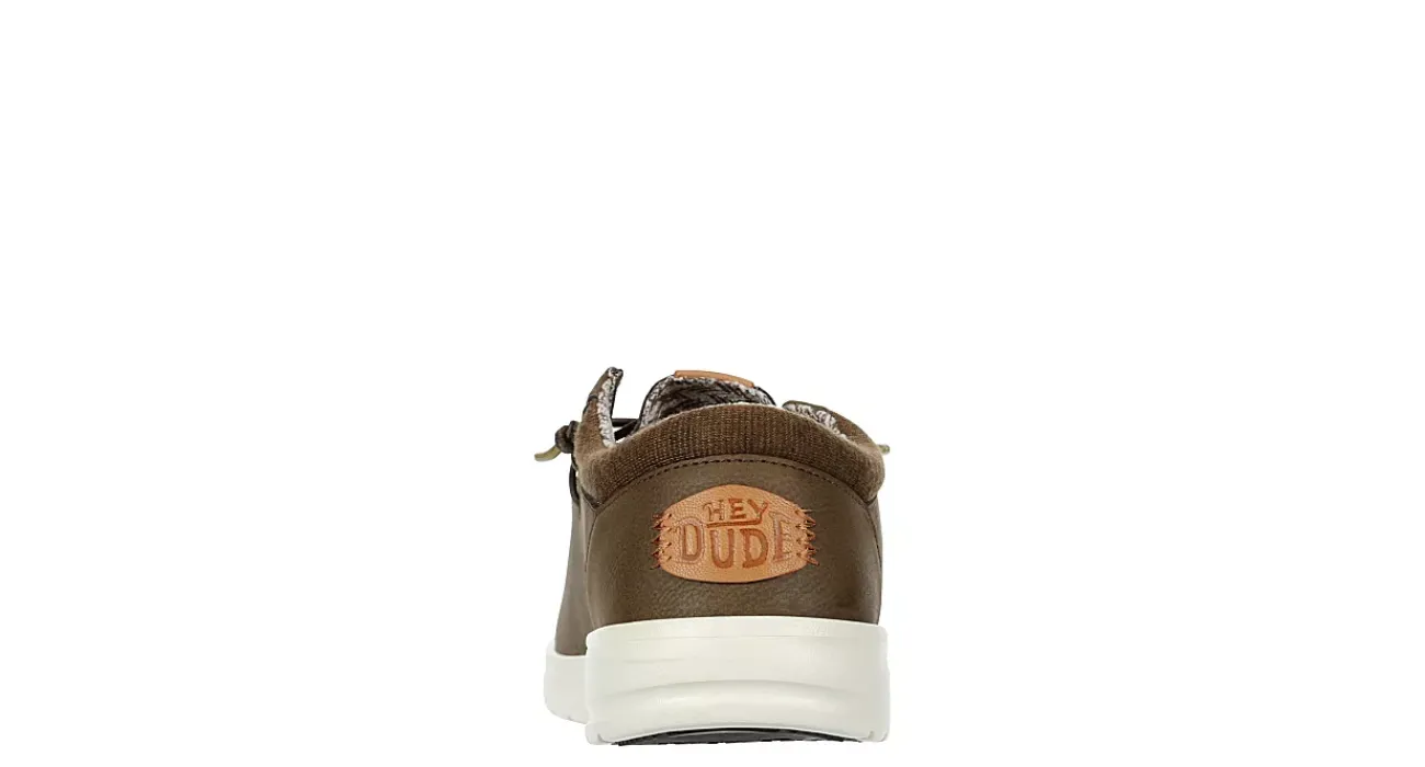 Update your favorite HEYDUDEs with the Paul men’s slip-on sneaker. Featuring a water-resistant recycled leather upper with suede detailing for extra style and contrasting heel detail, this sneaker has an Easy-On bungee lacing system to grab and go. The removable footbed offers ergonomic cushioning, while the lightweight outsole sets you up for great traction.