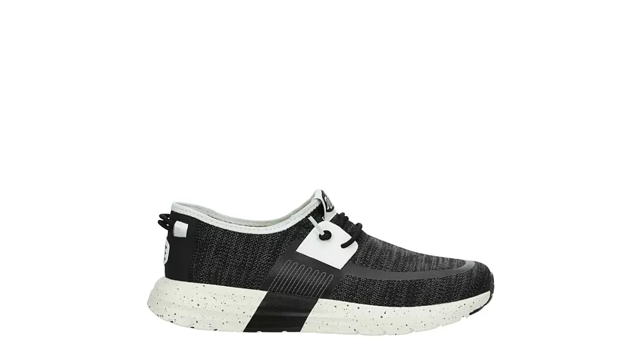 Enjoy every step in the HEYDUDE Sirocco men’s sneaker. With a stretchy polyester-blend upper featuring a contrasting heel detail and Flex & Fold technology, this sporty sneaker is machine washable for easy maintenance. The removable insole & leather lining support your foot, while the lightweight outsole keeps you going for hours.