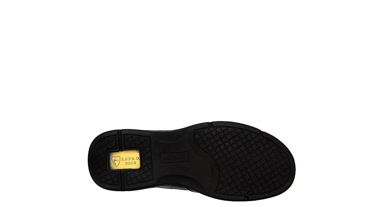 Always dress the part in the Spartan loafer from Deer Stags. With a faux tumbled leather upper and classic moc toe stitching, this slip-on also has elastic goring and a tight mesh lining for a secure, comfy fit. The cushy SUPRO Radical Rebound footbed contains rebounding Altron™ foam to extend wear, while the textured outsole is durable.