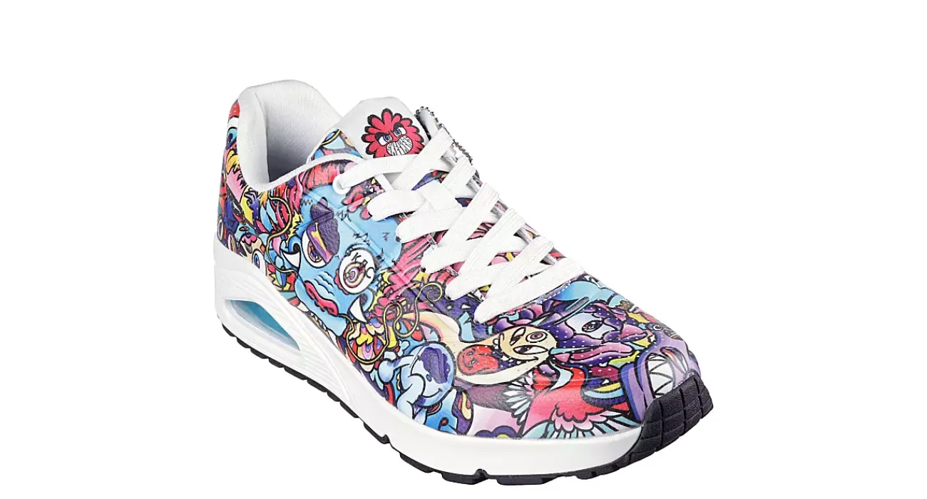 Fall into the fascinating “doodles” of Belgian artist, Vexx, with the Skechers Street Vexx: Uno – Color Doodle sneaker. With a durabuck upper featuring creative, bold color, this lace-up sneaker blends fashion with high and low art. The Skechers Air-Cooled Memory Foam® insole and Skech-Air® visible air-cushioned midsole comfort your foot, while the outsole provides flexible traction.
