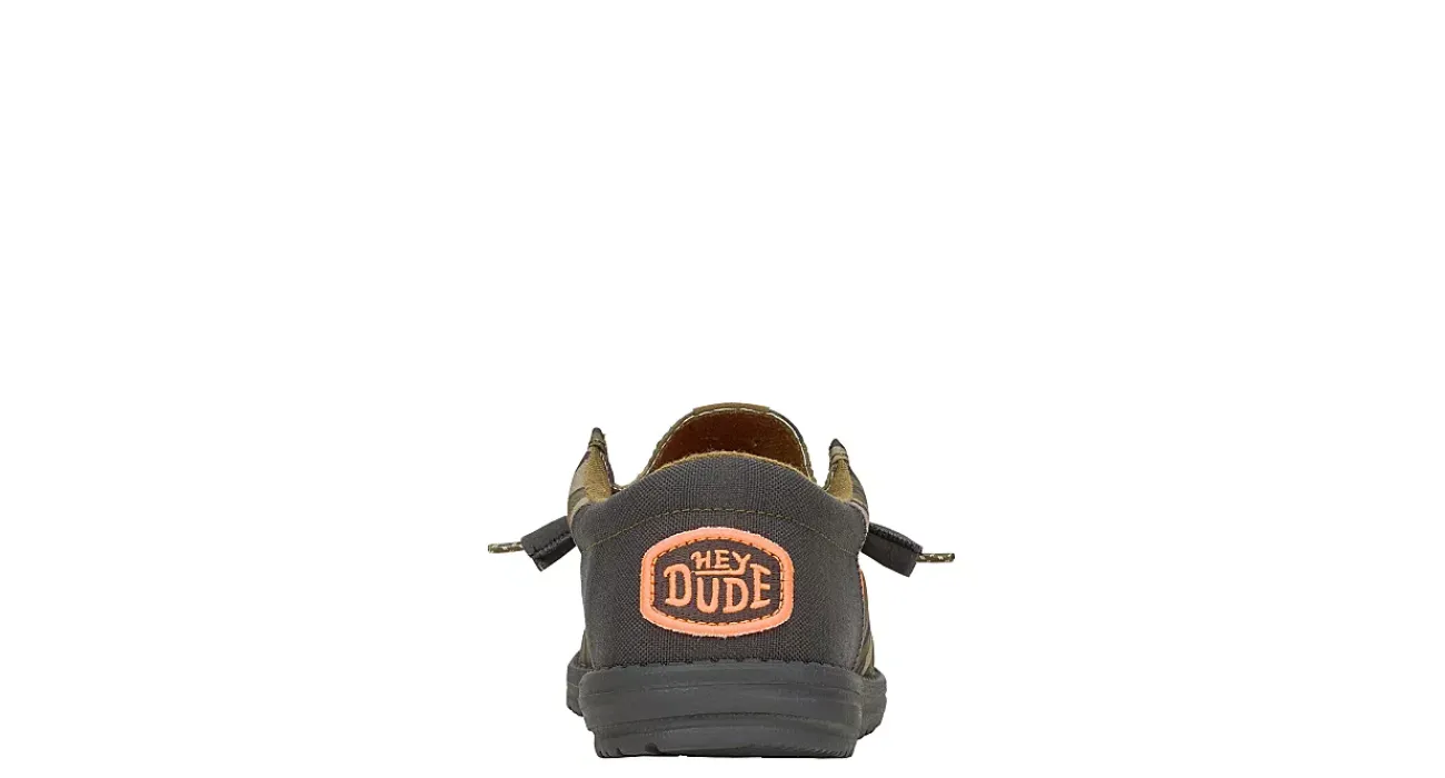 Take the outdoors with you in the HEYDUDE Wally Funk Mossy Oak® Bottomland® slip-on sneaker. Featuring a ripstop upper with the Mossy Oak® Original Bottomland® camo pattern, this slip-on shoe is modern and fun. The removable insole cushions every step, while the flexible outsole sets him free to explore unfettered.