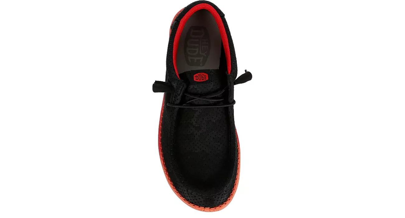 Ready for summer in the HEYDUDE Wally Hot slip-on sneaker. With a perforated textile upper featuring elastic laces for a secure fit and Flex & Fold technology, this slip-on also has a bright, speckled midsole. The leather insole cushions your foot, while the ultralight outsole sets you free to explore unfettered.