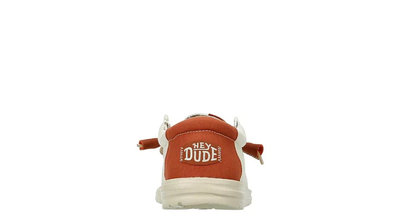 Relax into your time away with the HEYDUDE Wally Spring BreakR men’s slip-on sneaker. With a printed textile upper featuring a moc toe and contrasting heel detail, this slip-on shoe is perfect for the break. The removable insole offers cushioning, while the lightweight outsole is flexible enough to set you free to explore.