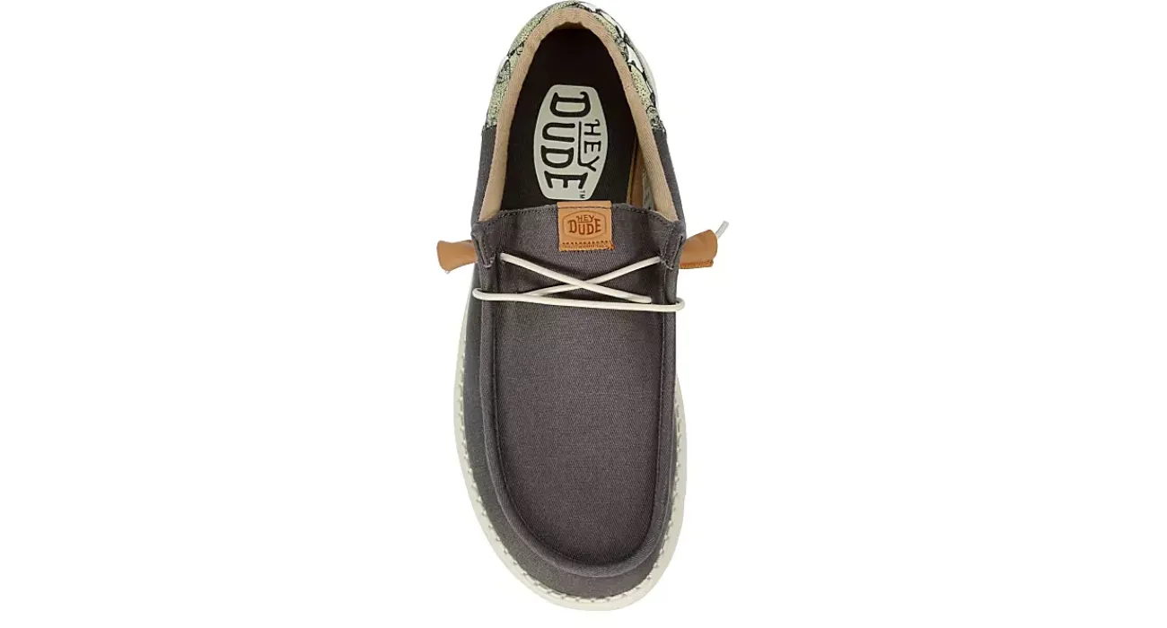Relax into your passion with the HEYDUDE Wally Funk Fish Camo men’s slip-on sneaker. With a chambray-blend upper featuring a cushioned ankle collar and contrasting heel detail, this sneaker also has elastic laces for a secure fit. The removable foam insole comforts every step, while the ultralight outsole sets you free to explore unfettered.
