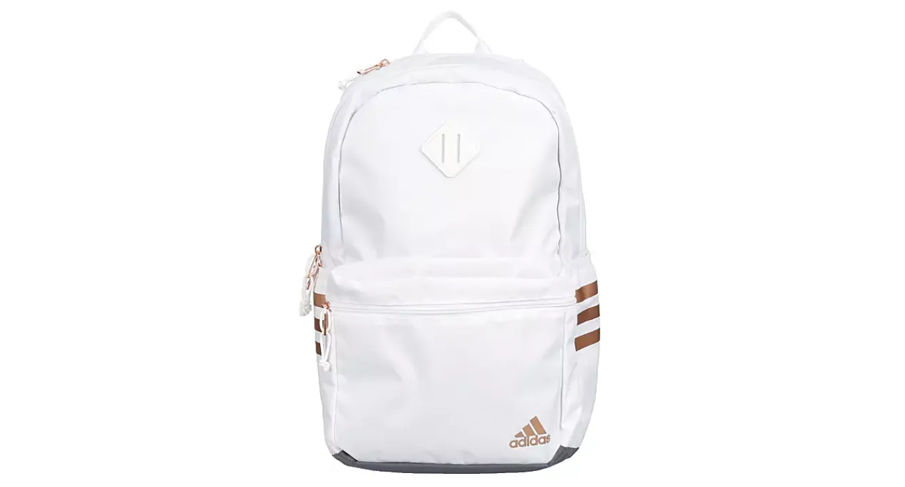 Fit everything you need in the adidas Classic 3-Stripes 5 backpack. Made from 100% polyester, this adidas-branded backpack features padded shoulder straps and back panel for a comfortable fit. Main compartment includes a sleeve large enough to fit a 16″ laptop, while the front pocket offers easy access to smaller items like your phone, wallet, and keys.