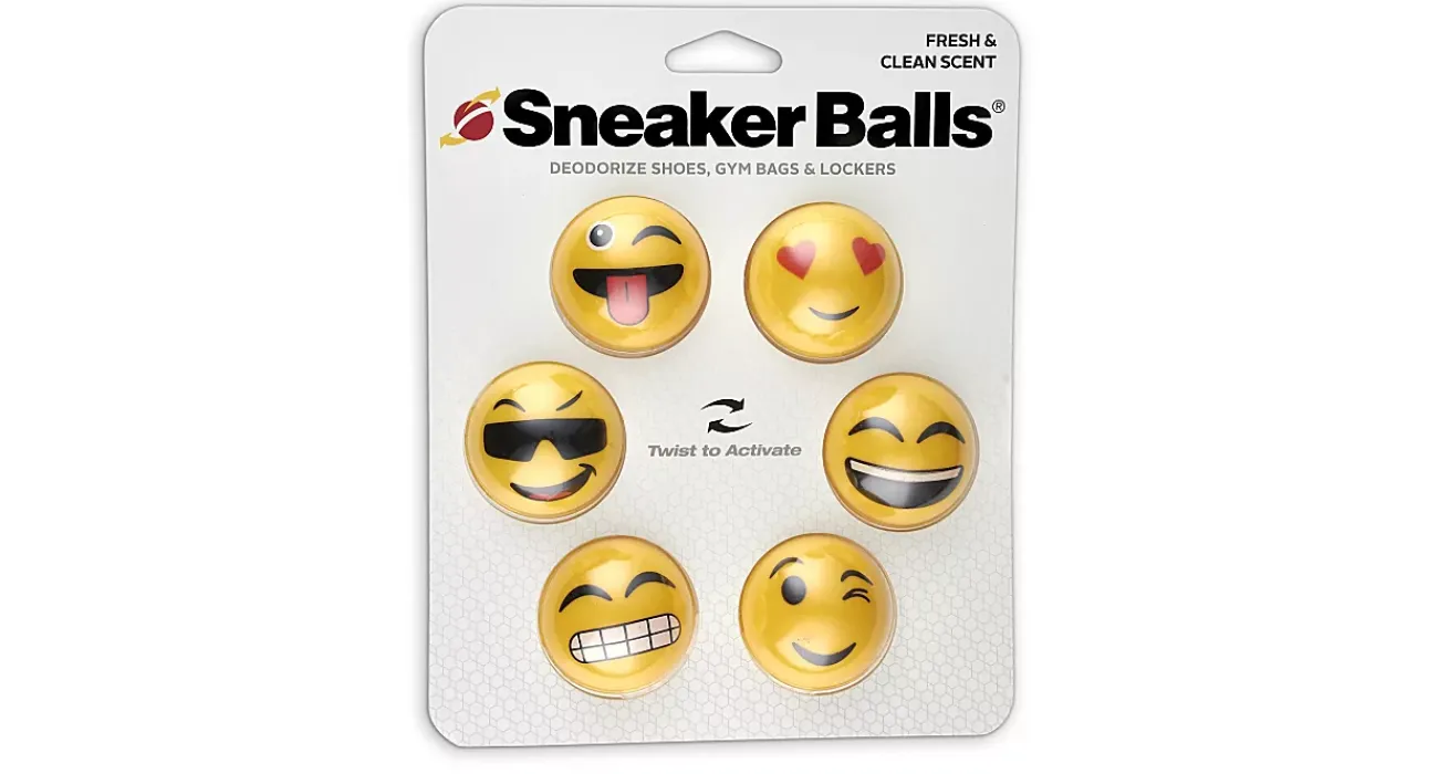 Cut the odors after workouts and playtime with the Sneaker Balls Funny Face unisex 6 Pack. Use these compact shoe deodorizers to freshen up your shoes, gym bags, lockers, and closets. The fresh and clean scent lasts for over 2000 hours once activated with a simple twist.