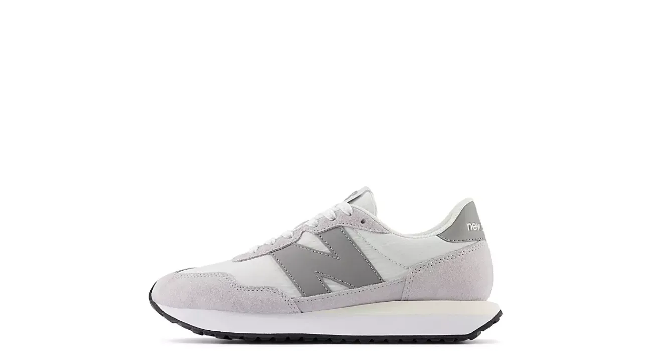 Reinterpreting the running heritage of the ’70s, the 237 women’s sneaker, inspired by the New Balance 327, combines simple style with modern performance. With a suede & nylon upper featuring gator-inspired foxing and an oversized N logo for vintage appeal, this lace-up shoe also has an exposed foam tongue for extra comfort. The EVA midsole cushions every step, while the herringbone outsole and mudguard protect stability.