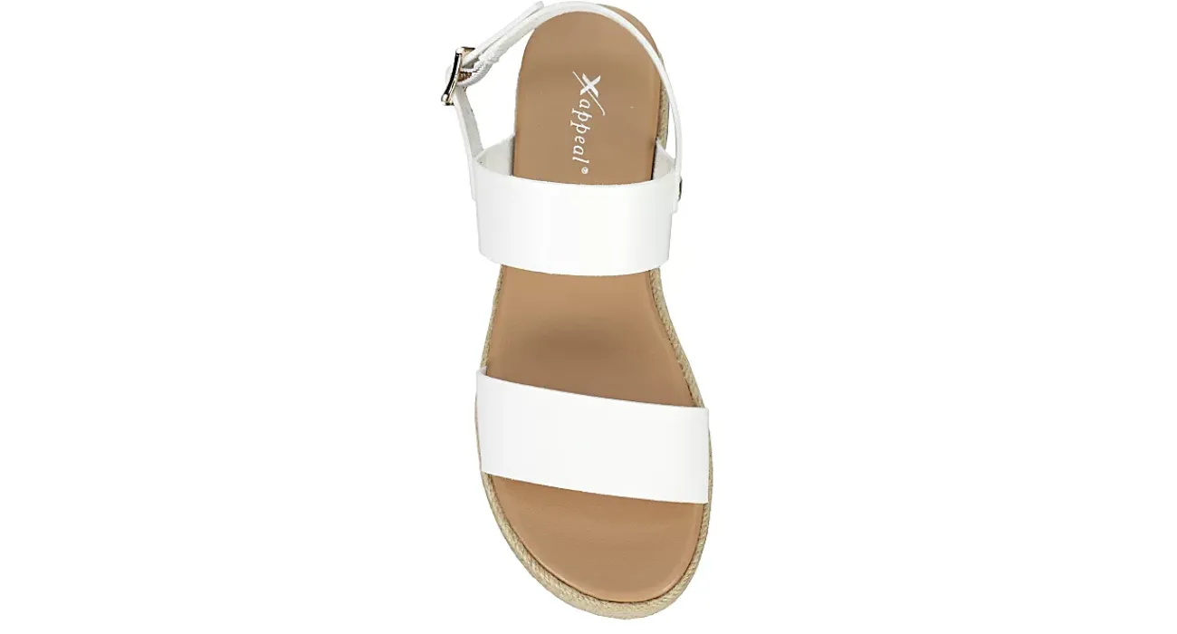 Strut into summer in the Xappeal Amelia women’s wedge sandal. With a synthetic upper and metallic accents, these white wedge sandals offer a breezy approach to summer fashion with an espadrille midsole. The lightly padded footbed soothes your feet while the synthetic traction sole keeps you stable.