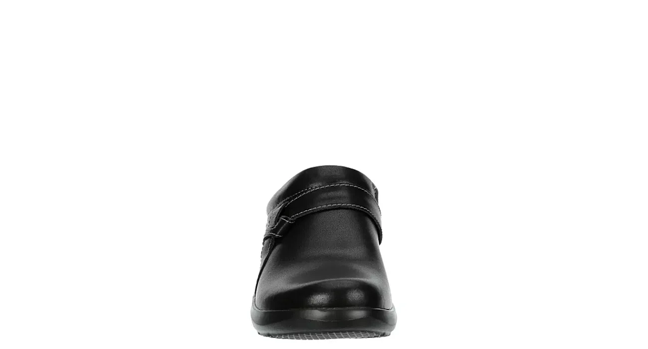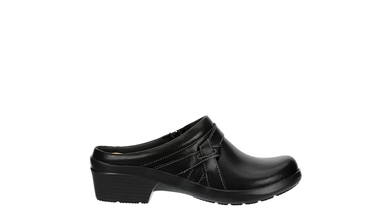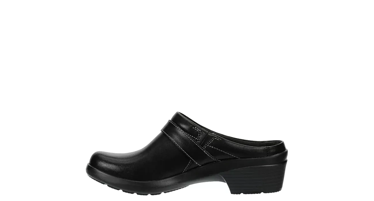 Invest in the best with the Angie Mist clog from Clarks. Featuring a premium leather upper with elastic inserts for a secure fit, this easygoing mule goes from work to the weekend. The Ultimate Comfort footbed promises luxurious cushioning while the lightweight sole absorbs shock.