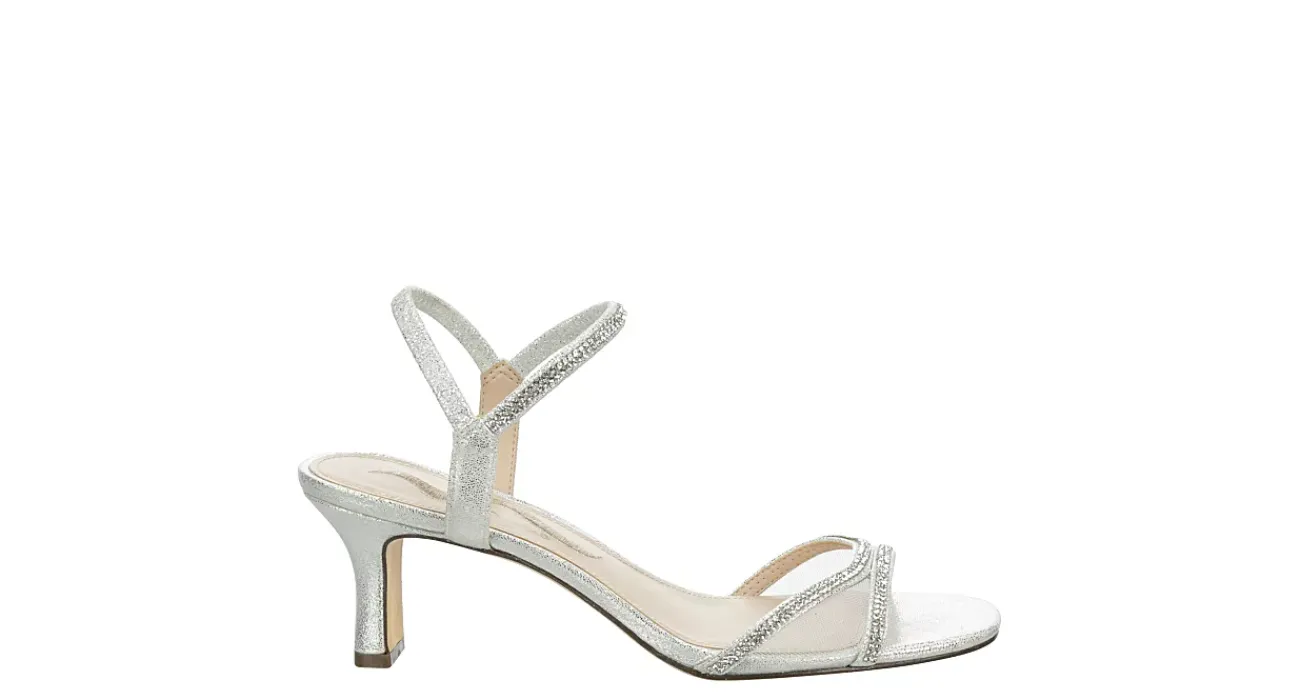 Dazzle your audience in the Barron sandal from N By Nina. With a glittery faux leather & mesh upper featuring a dainty mesh panel, this easy ankle strap sandal is dresses up special events. The footbed soothes your foot, while the kitten heel adds stable lift.