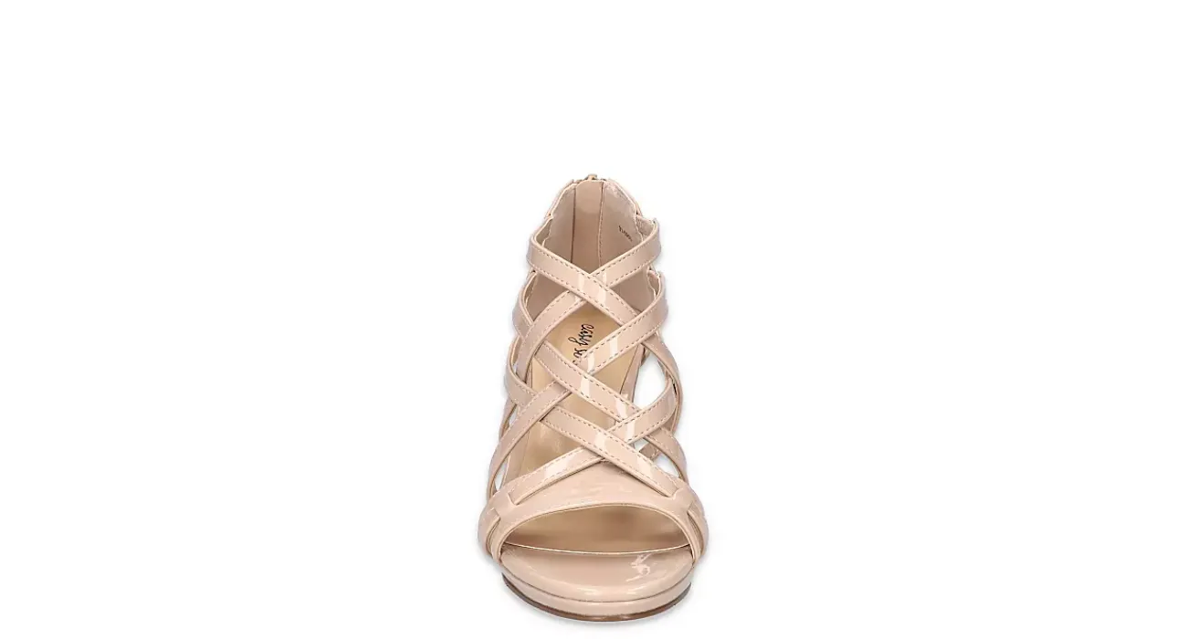 Dress up your casual look in the Easy Street Bee women’s sandal. With a patent leather upper and interwoven structure, this rear zip sandal offers modern elegance and breathability. The footbed offers cushioning while the covered heel adds just enough lift.