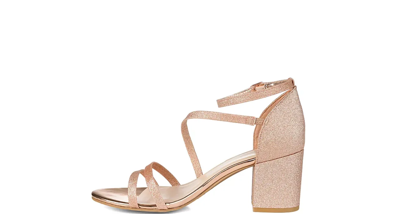 Dazzle and sparkle in this Journee Collection Bella dress heel. The synthetic upper has a glitter finish that adds some pizzazz to any dressy look. The 2 1/2″ block heel lifts your silhouette for a confident style.
