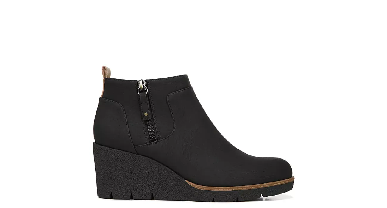 Make a statement in the stylish Bianca women’s bootie from Dr. Scholl’s. With a faux leather upper featuring an outside zipper and back pull tab for easy slip-on entry, this boot, with its almond-shaped toe and 2½” wedge heel, is the perfect choice to amp up any outfit. An anatomical insole cushions and supports your feet, while the durable synthetic outsole provides excellent grip and stability.