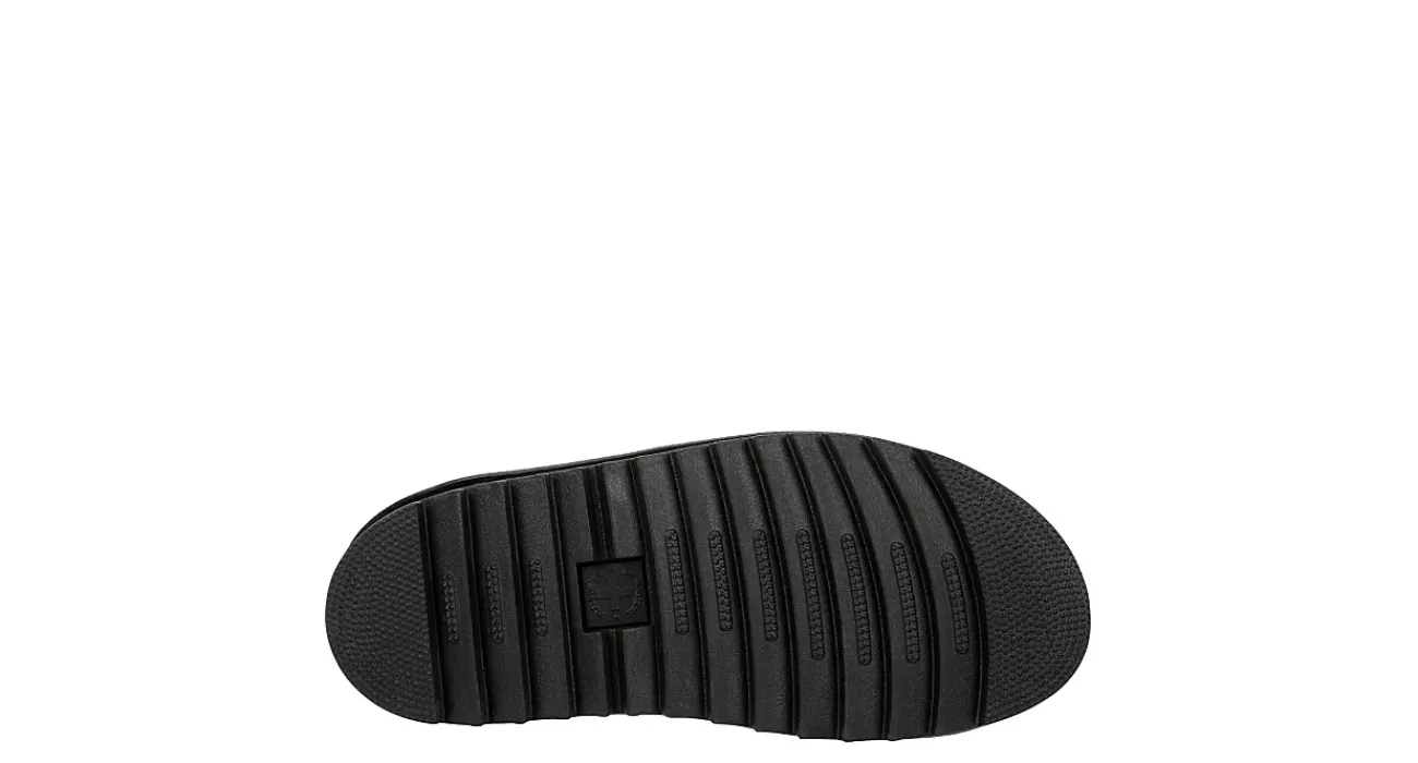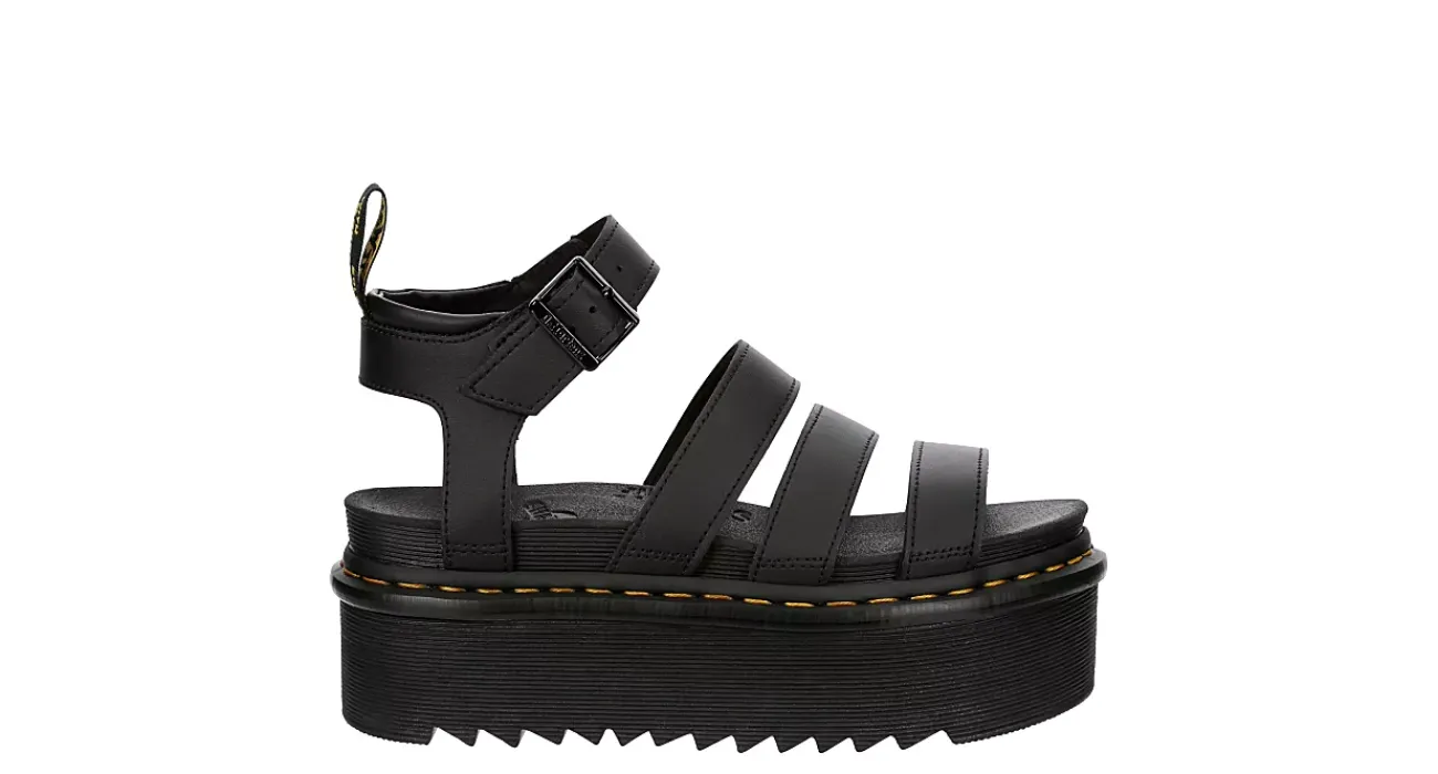 Tough style just got loftier with the Dr. Martens Blaire Quad Hydro women’s sandal. With a synthetic-coated leather upper and welted with the signature yellow stitching, these ankle buckle sandals also feature a padded collar for comfort. The SoftWair Memory Foam footbed provides comfort while the lightweight Zebrilus platform sole offers lift and traction.