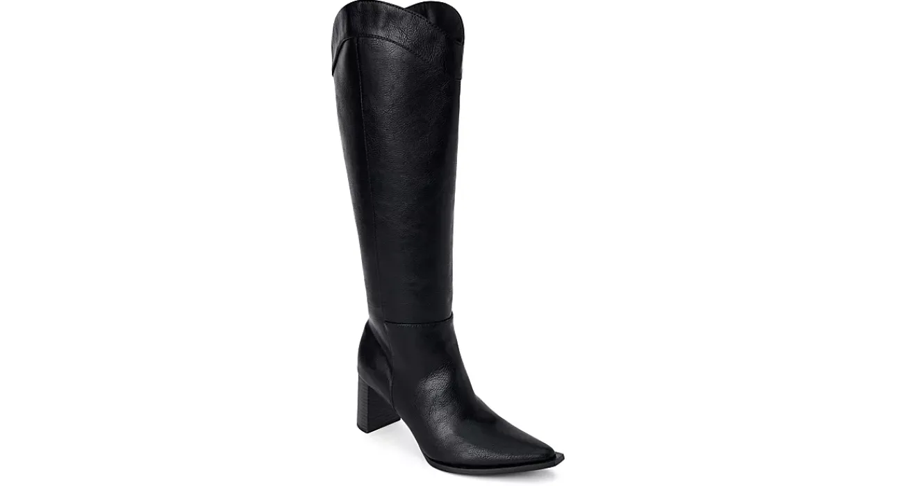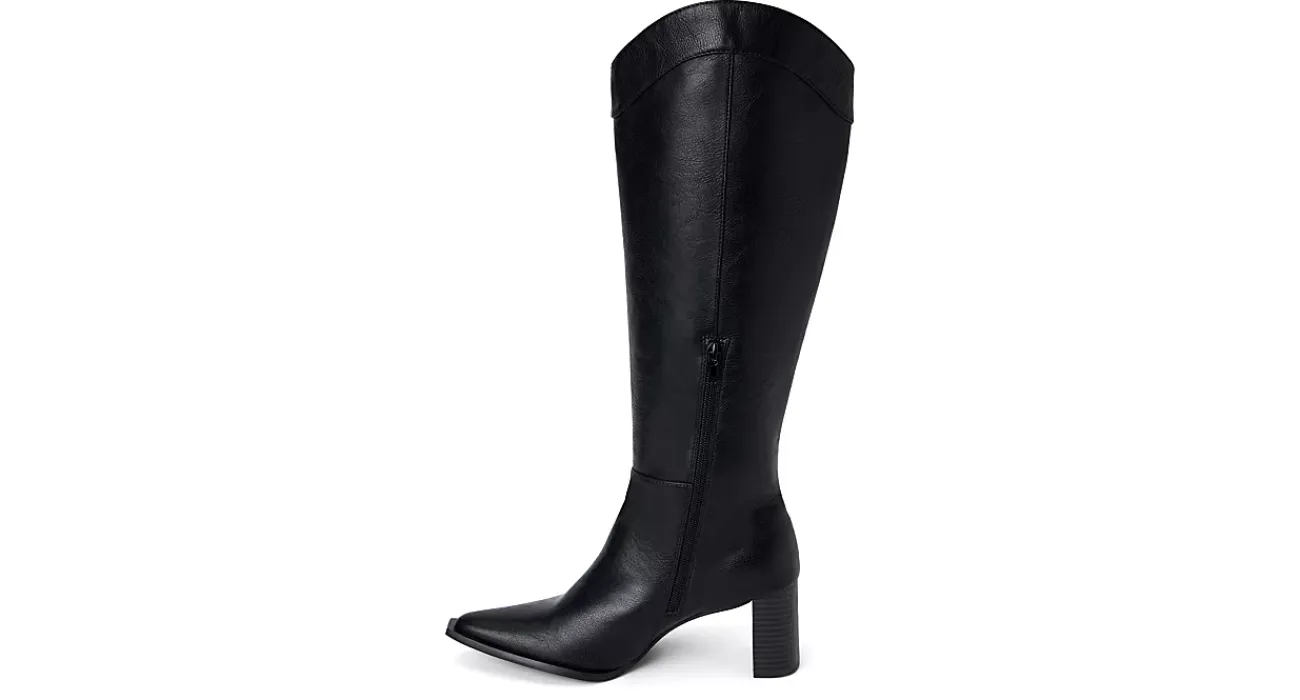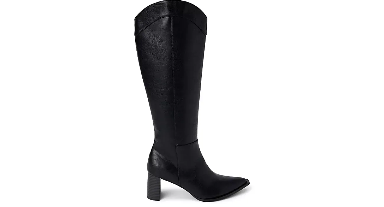 Step lively in the Bonnye dress boot from Coconuts by Matisse. Featuring a faux leather upper with stitching details and a snip toe, this 17″ knee high boot feels like a Western stroll. The insole soothes your foot while the stacked heel offers stability.