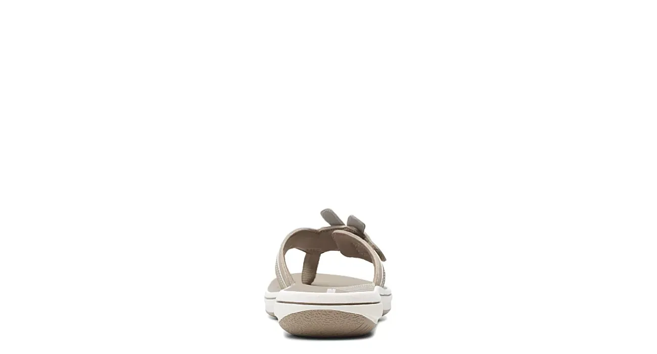 Feel like you’re stepping on clouds all summer long in the Clarks Brinkley Floral women’s sandal. With a faux leather upper decorated by a flower detail, this thong sandal is sure to become a favorite. The padded footbed comforts your foot while the synthetic outsole keeps you stable.