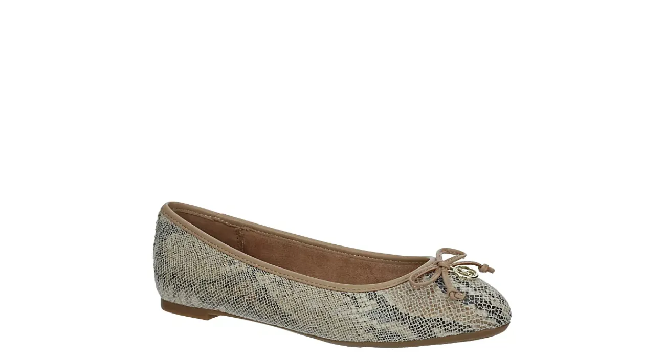 Wade into the urban jungle with the Callan women’s flat from Sam & Libby. Featuring a snake print faux leather upper with a dainty bow detail with Sam & Libby charm, this ballet flat is designed for modern versatility. The footbed comforts your foot, while the textured outsole offers subtle traction.