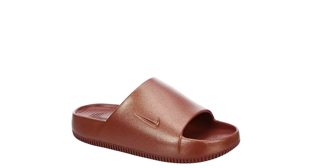 Dial down your stress in the Calm women’s slide sandal from Nike. Featuring a water-friendly, printed upper with a contoured fit for a soothing feel, this slide works everywhere from the streets to the pool. The foam footbed cradles your foot while the subtly textured outsole adds some traction.