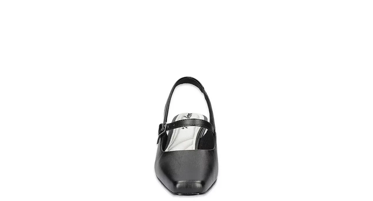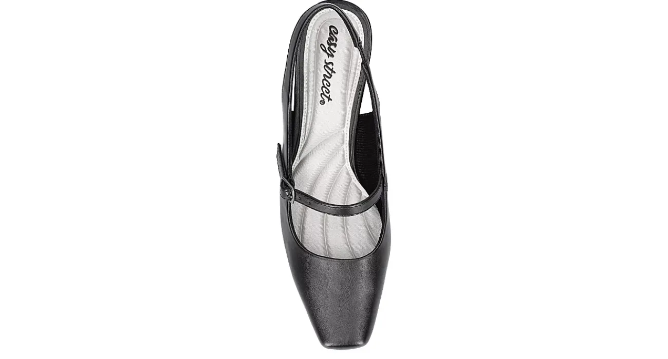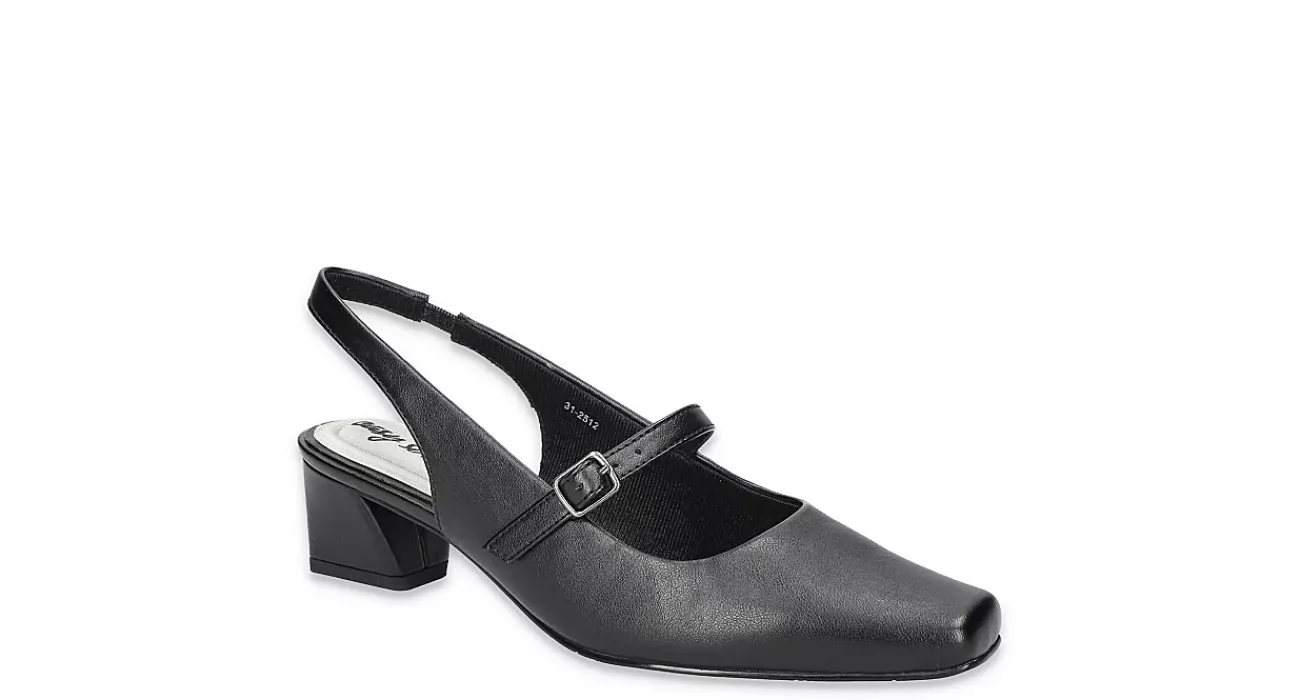 Raise your profile in the Cameo women’s slingback pump from Easy Street. Featuring a faux leather upper with a snip square toe, this slingback also has a secure instep buckle strap. The heel-to-toe insole cushions your steps while the underslung heel works style magic on the Easy Flex outsole.
