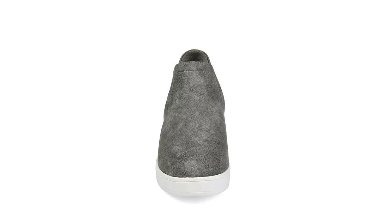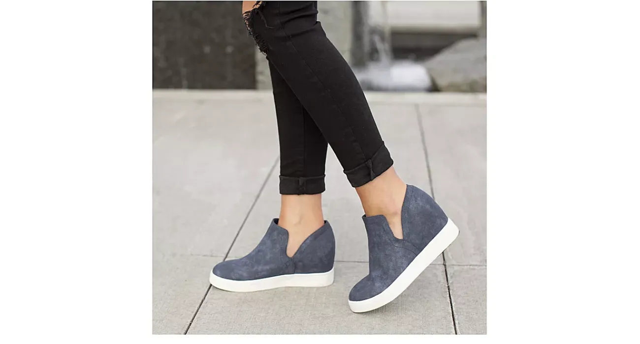 Pull your outfit together with the Journee Collection Cardi women’s wedge sneaker. Subtle lift from the 3″ wedge heel with a faux leather upper and Vulcanized rubber sole for a sporty finish.