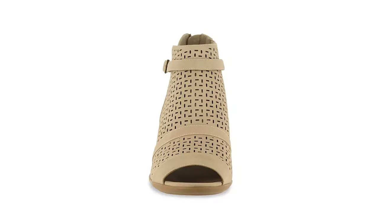 Add some sophistication to the fun of summer in the Easy Street Carrigan women’s shootie. With a faux leather upper and laser cutouts, this rear zip shoe + bootie gives structure to amp up all of your warm weather outfits. The padded footbed offers cushioning while the synthetic outsole provides stability.