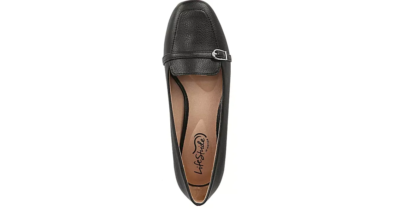 Maintain a professional look for the office with the Catalina women’s loafer from LifeStride. With a faux leather upper featuring a decorative strap with a metallic buckle and a subtle square toe, this loafer pairs nicely with any outfit. The Soft System® comfort package with In Motion® technology offers lightweight cushioning and support, while the traction outsole provides stability.