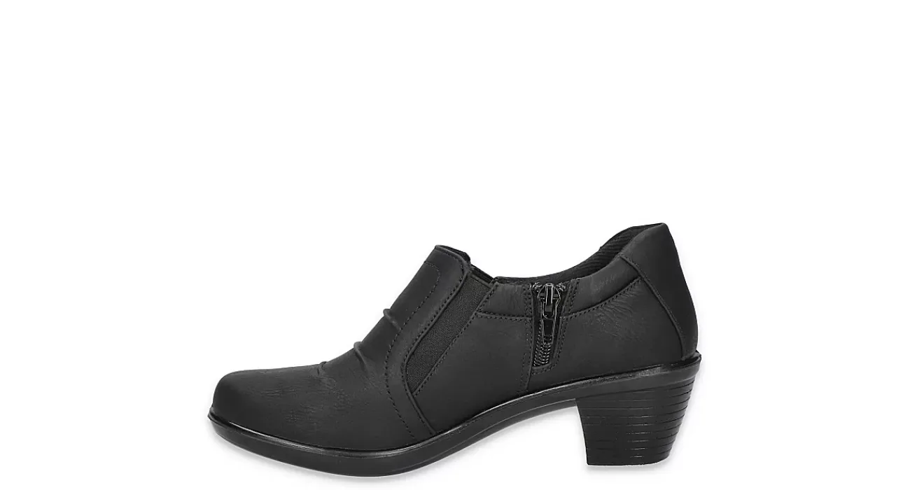 Stay flexible with your style in the Easy Street Chipper clog. Featuring a faux leather upper with ruched detailing and a Comfort Wave construction, these inside zip clogs are great for exploring the city or staying close to home. The Easy Motion by Easy Street insole is removable, while the block heel offers stability on your journey.