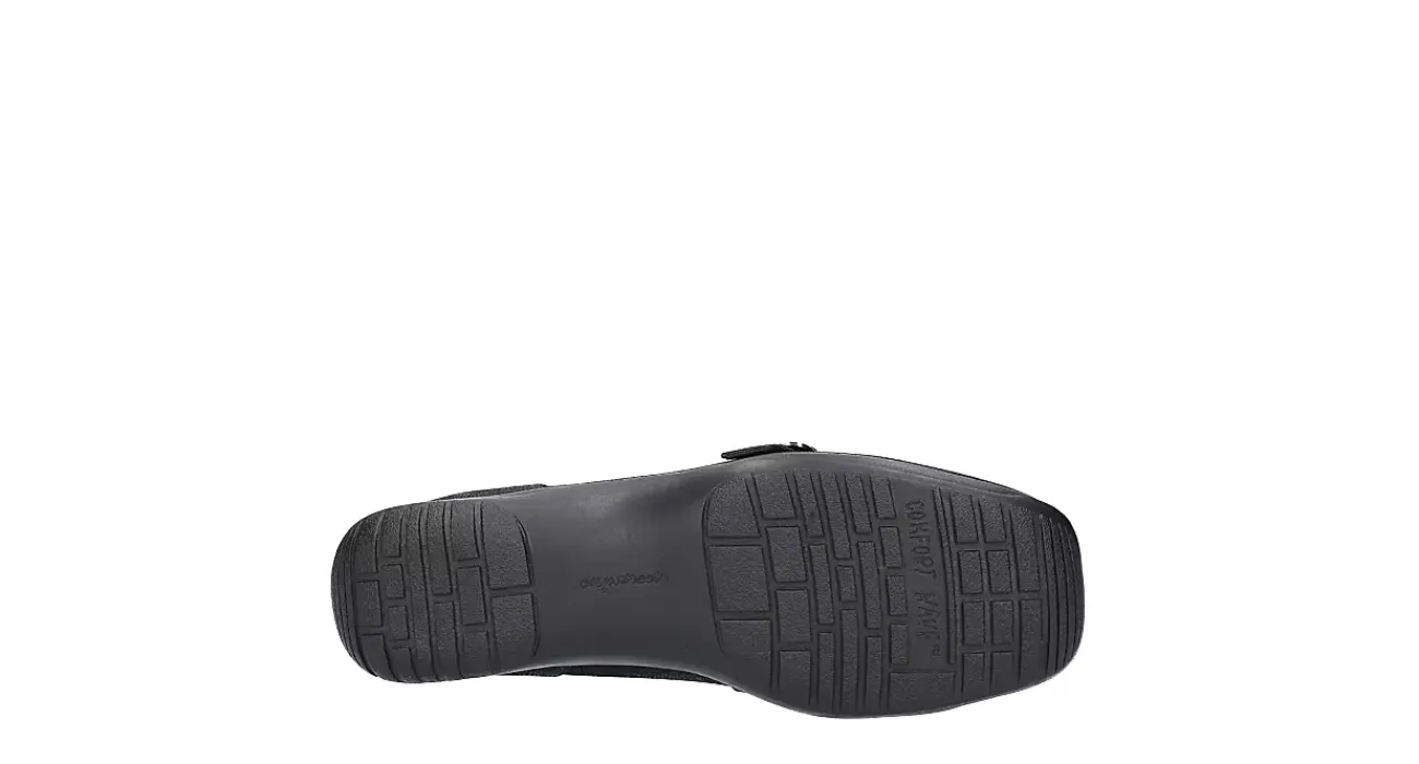 Spice up your usual look with the Cinnamon women’s slip-on sneaker from Easy Street. With a faux leather upper and buckle accent, this slip-on sneaker also features a square toe and fabric lining. The padded footbed and synthetic outsole offer cushioned traction to keep you steady all day long.