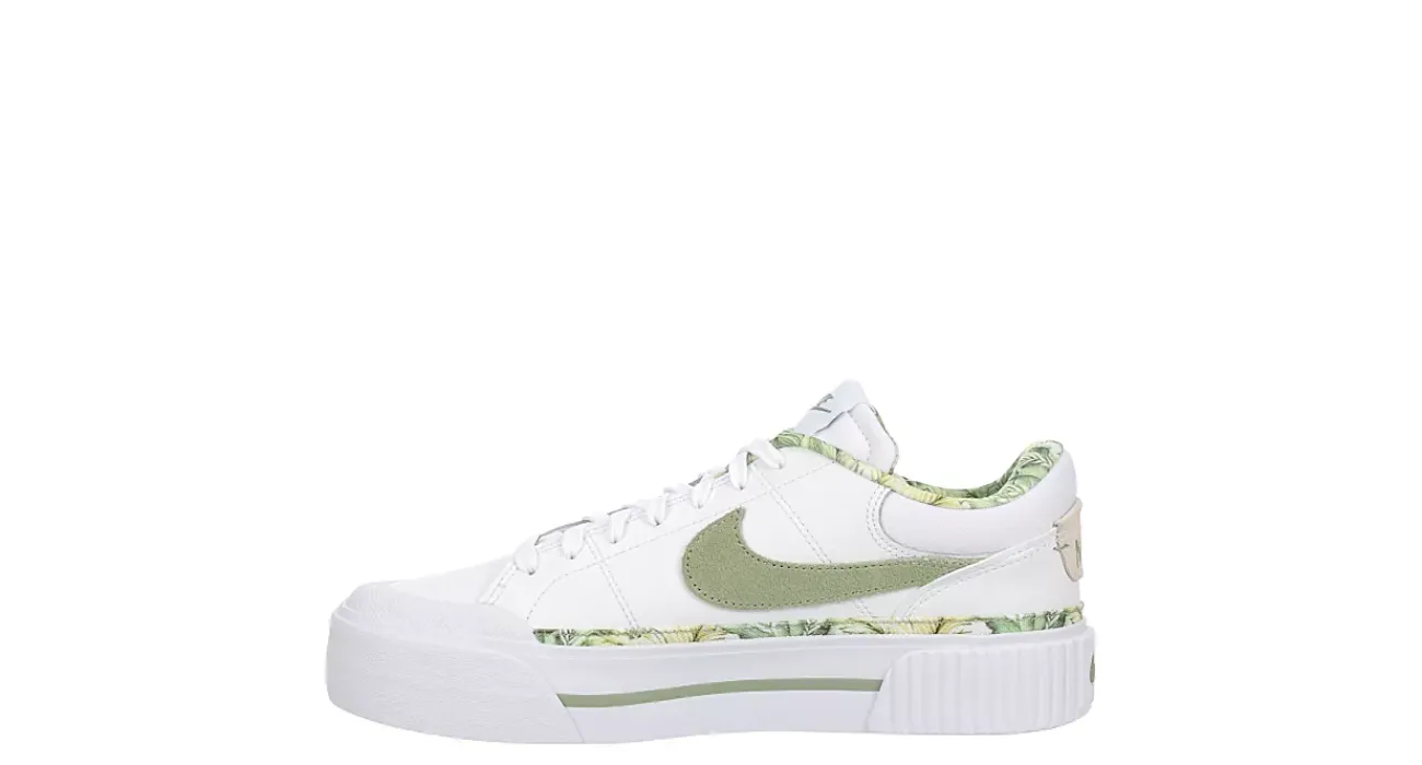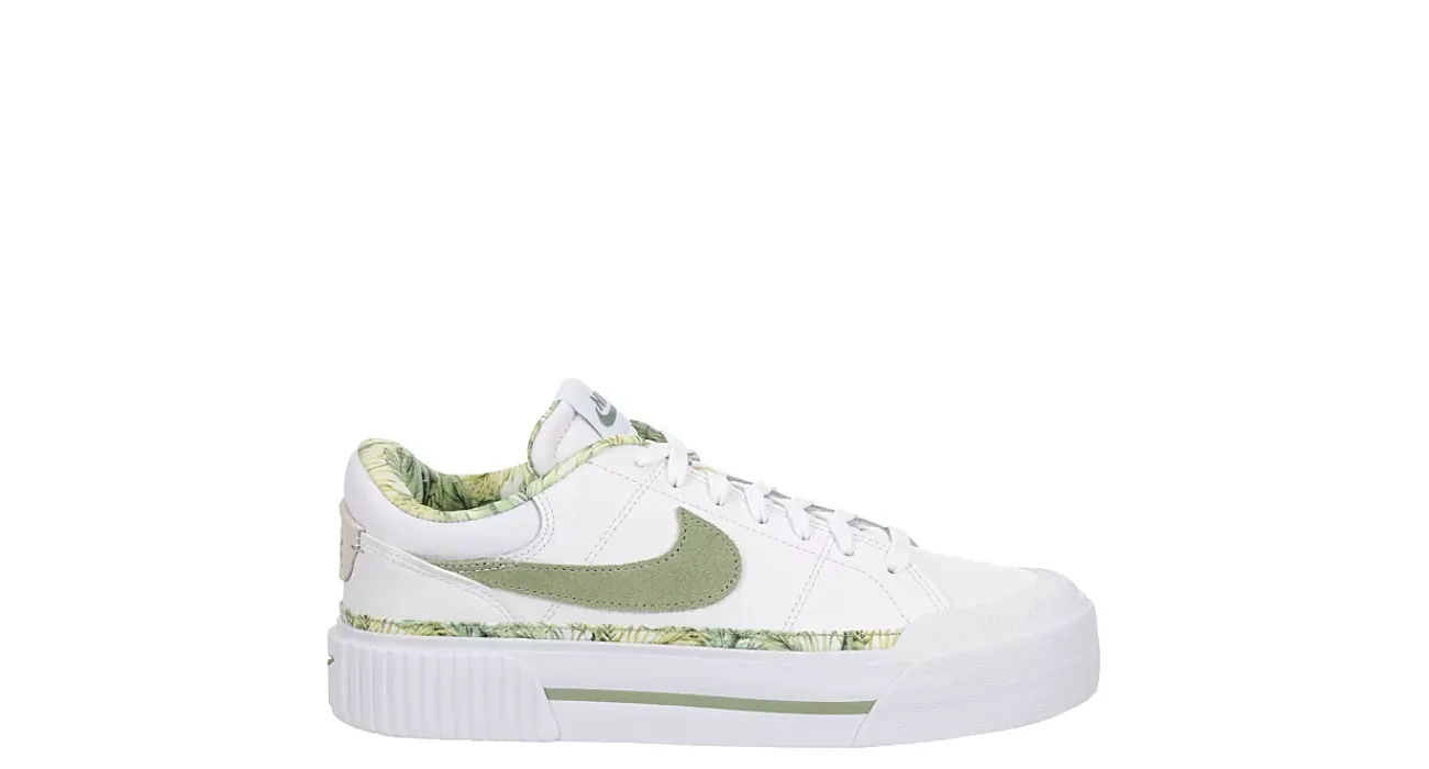 Enhance your footprint in the Nike Court Legacy Lift women’s sneaker. With a leather upper featuring a padded collar & tongue for extra comfort, this lace-up sneaker makes a bold statement with floral accents. The platform midsole offers just enough lift, while the rubber outsole holds you down with necessary traction.