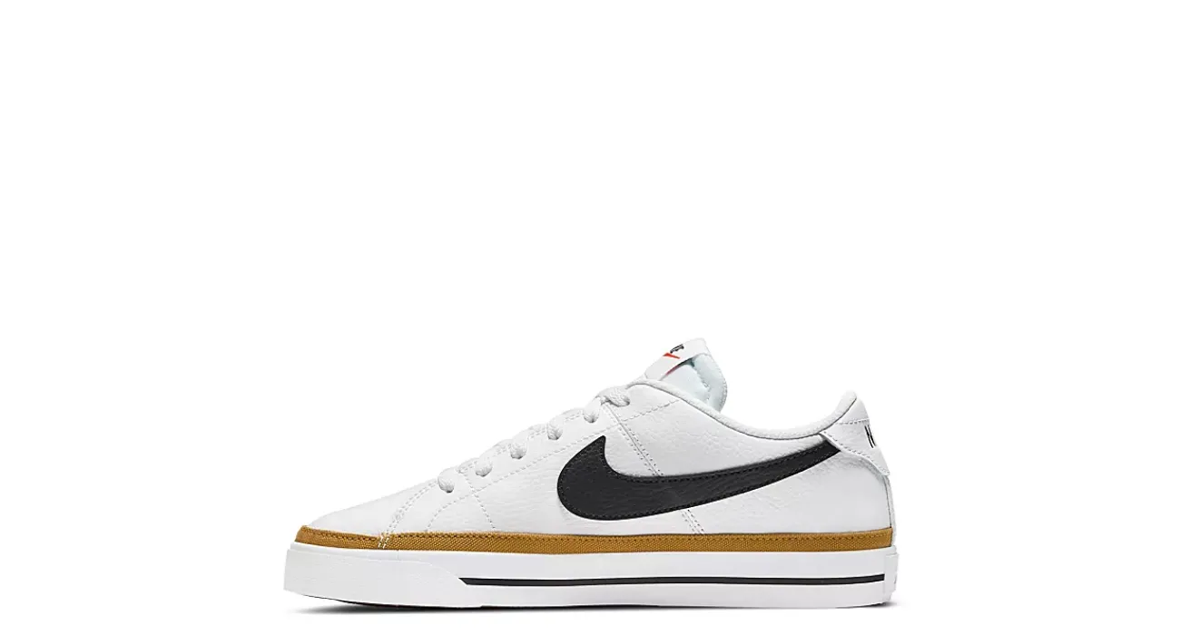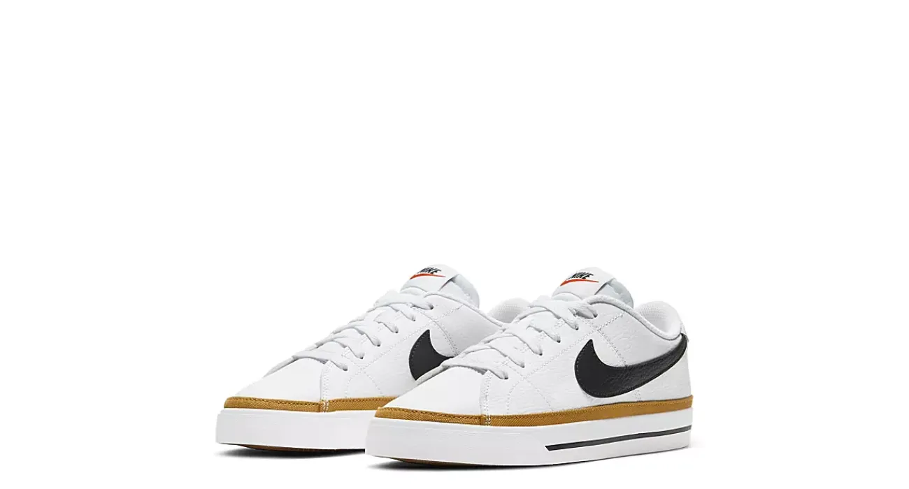 Streetwise, but classic the Nike Court Legacy Low women’s sneaker upholds tennis history with modern style. With a leather upper and canvas trim around the midsole for flair, this lace-up sneaker also features intricate needlework to enhance its sleek construction. The herringbone pattern on the rubber outsole ensures great traction on the court or off.