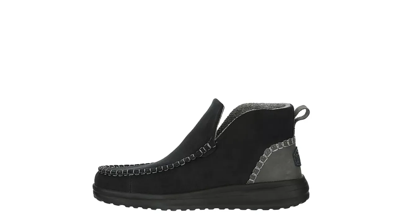 Dream on in the HEYDUDE Denny Suede women’s slip-on sneaker. With a suede upper featuring a moc toe, this bootie shows its style with a contrasting heel. The removable insole cushions while the outsole offers flexible traction.