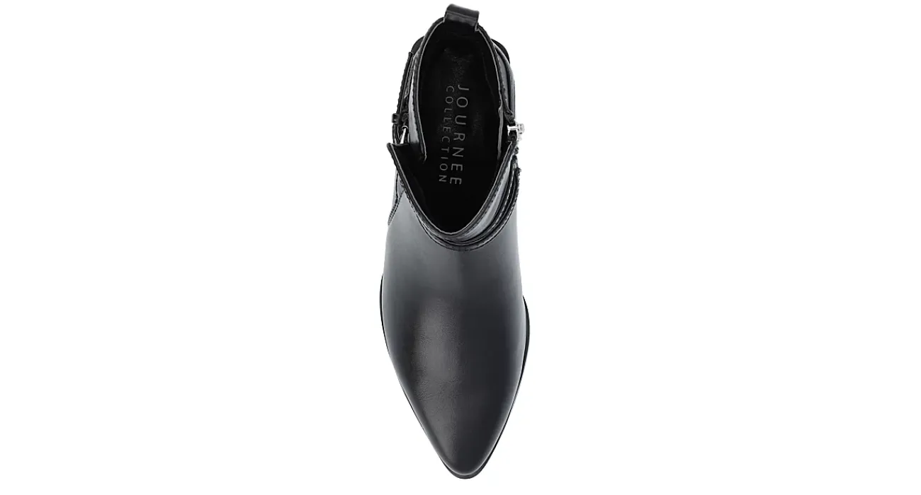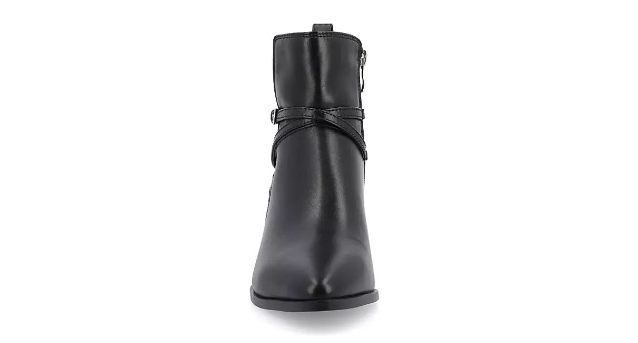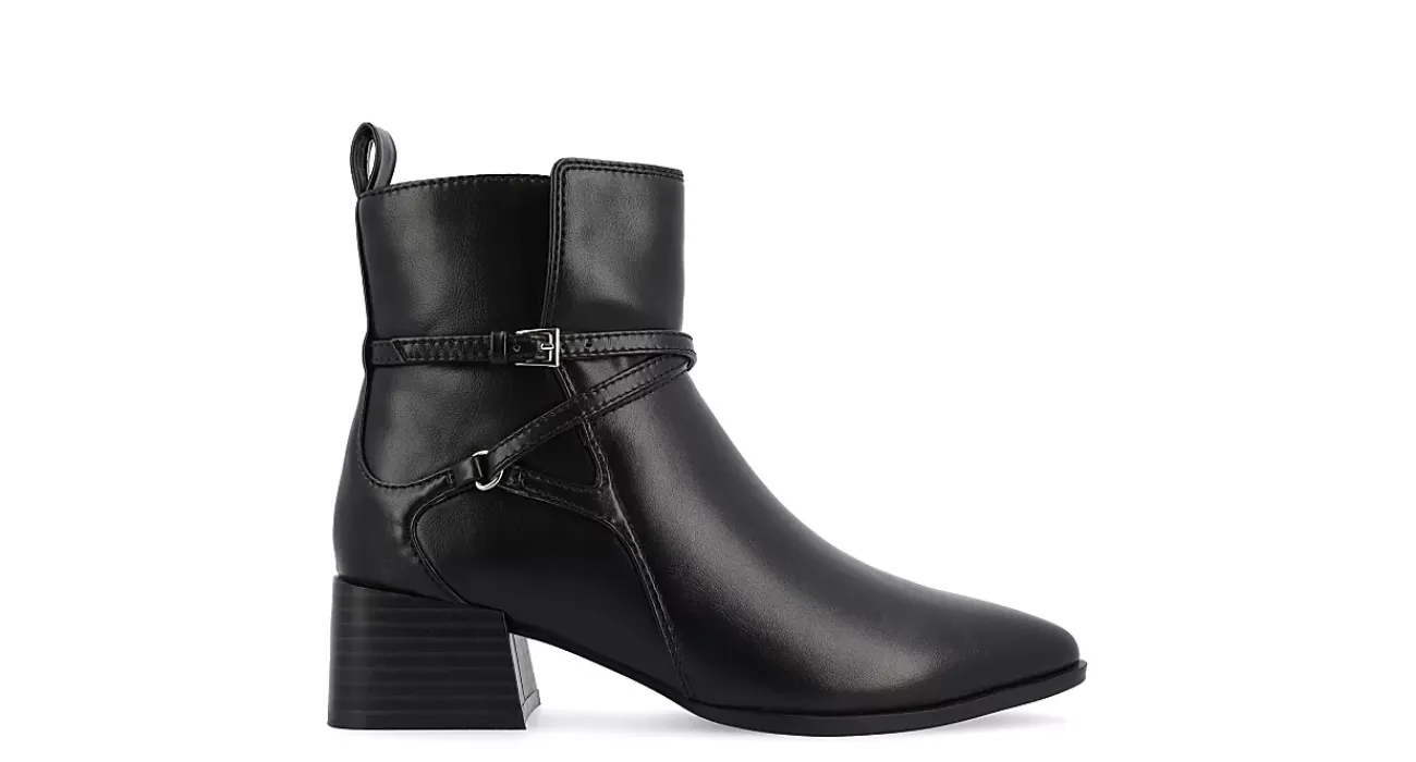 Fall back into your best style in the Estelle Wide women’s bootie from Journee Collection. With a vegan leather upper featuring a sleek pointed toe, this bootie has a chic wraparound buckle strap detail. The Tru Comfort Foam™ cushions every step while the heel adds stable height.