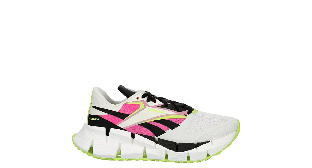 Support your best run in the FloatZig 1 women’s running shoe from Reebok. Featuring an engineered mesh upper with reflective overlays for safety, this high energy return sneaker also has a comfy padded collar & tongue. The lightweight Floatride Energy Foam enhances cushioning, while the innovative outsole disperses energy from heel strike to toe-off.
