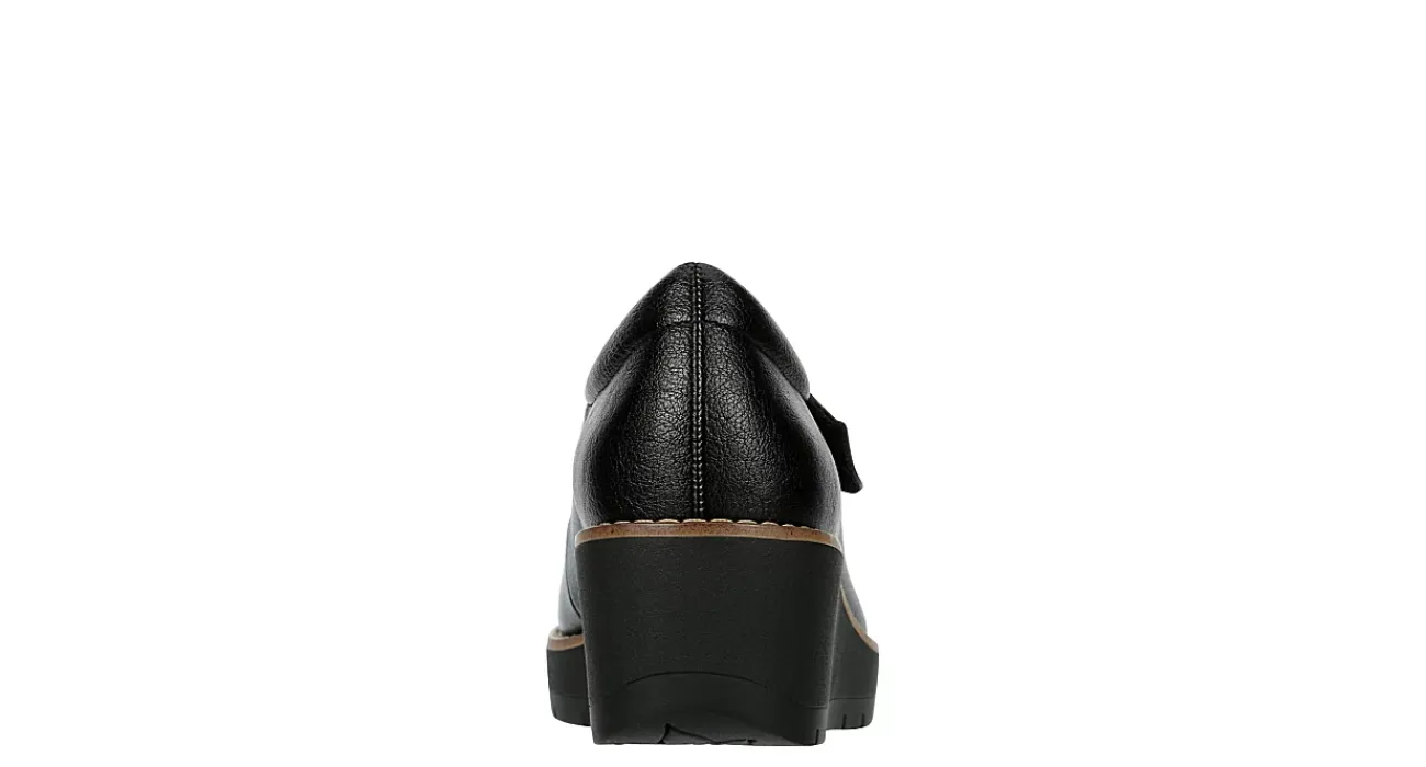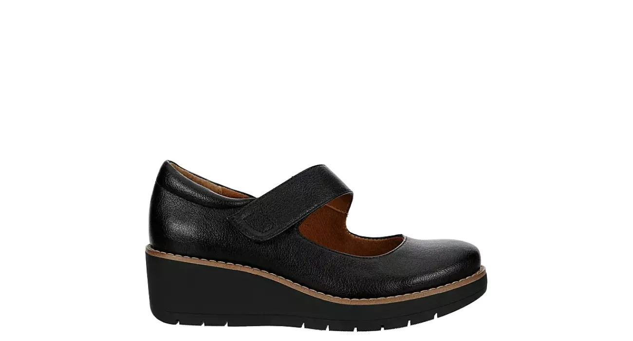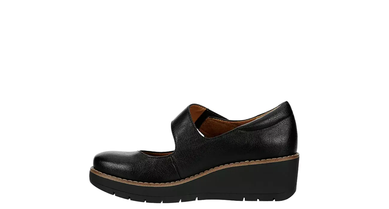 Walk through the fall chill in the Franlee clog from Eurosoft. Featuring a faux leather upper with a faux suede lining, this Mary Jane clog has an asymmetrical strap and padded heel for extra comfort. The footbed cushions every step while the platform wedge elevates.