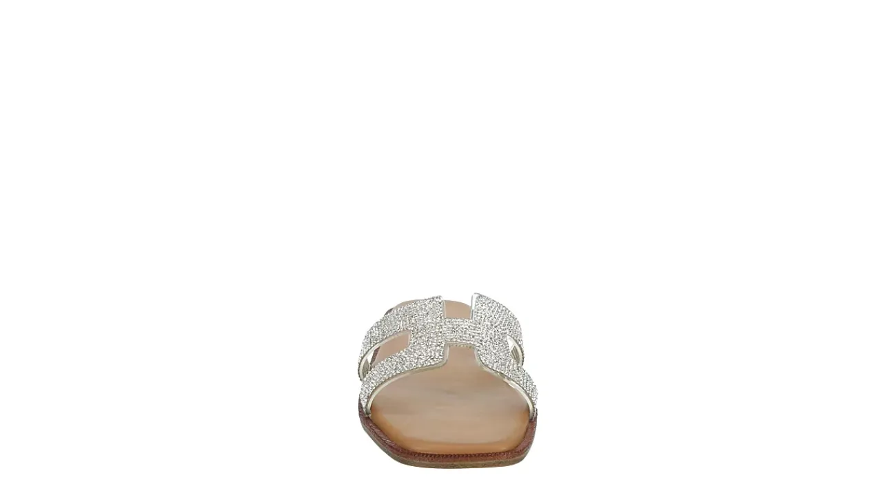 Glitz up your spring style in the Hailey-R women’s flat sandal from madden girl. Featuring a lucite & rhinestone upper with cutouts and a square toe for extra style, this slip-on shoe works with cropped jeans or midi skirts. The insole comforts your foot while the flat outsole offers durability.