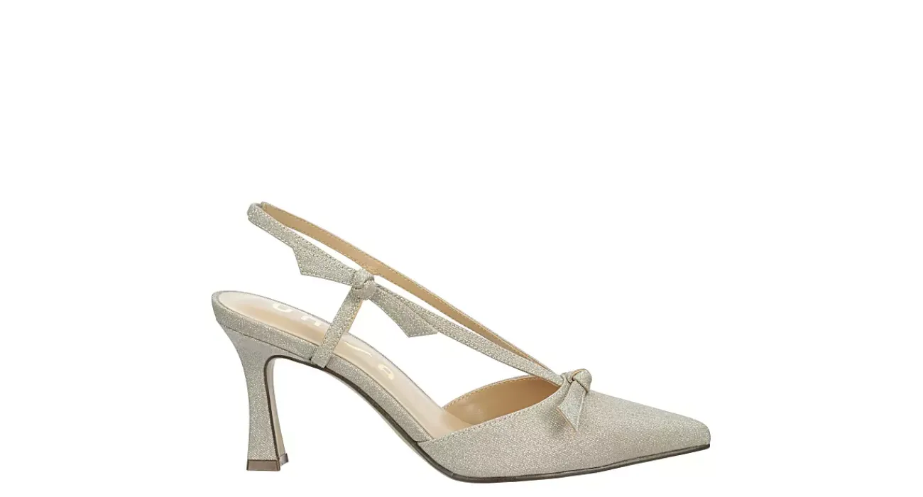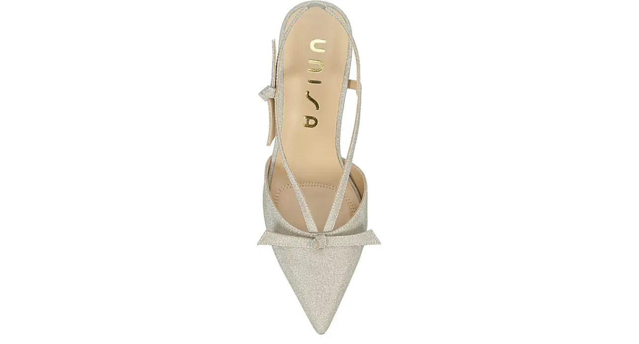 Make your entrance count in the Hanner pump from Unisa. Featuring a glittery faux leather upper with a sleek pointed toe, this pretty stunner elevates with double bow accents. The footbed soothes, while the flared heel adds more than enough lift.