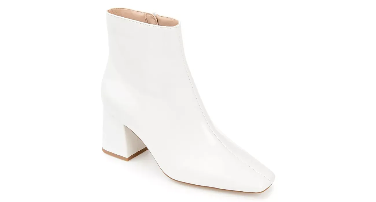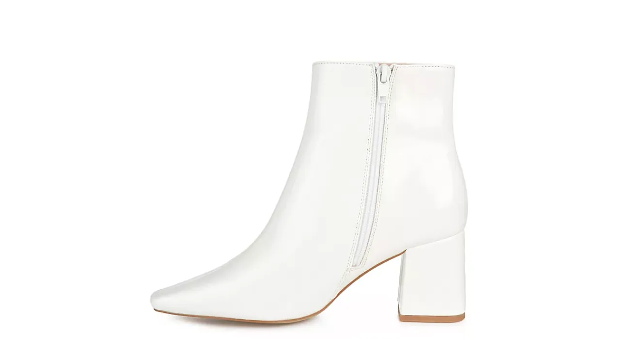 Out cool onlookers in the Haylinn women’s bootie from Journee Collection. With a patent vegan leather upper featuring a stylish square toe, this ankle bootie is definitely a fashion hightlight. The Memory Foam footbed cushions while the stable heel provides more than enough lift.