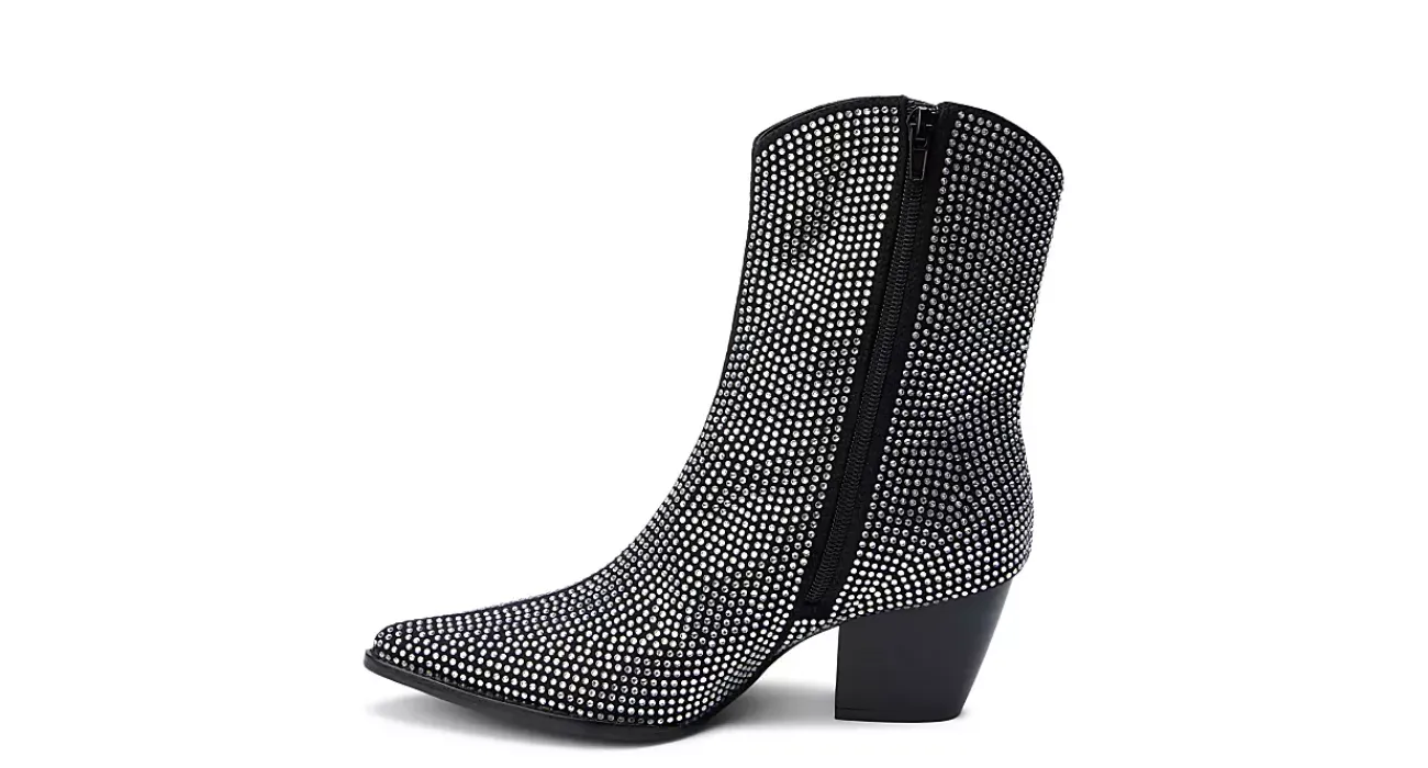 Shine up your look in the Hazel women’s Western boot from Coconuts by Matisse. Featuring a rhinestone-covered textile upper with a pointed toe, this ankle boot is sure to grab some attention. The insole comforts your foot while the sturdy heel keeps you grounded in style.