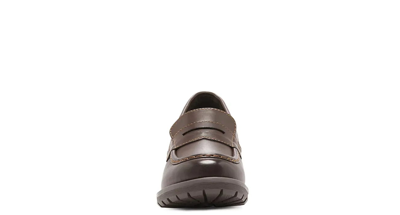 Elevate your prep style in the Eastland Holly women’s loafer. With a faux leather upper accented by the classic penny loafer profile, these slip-on loafers are primed to accessorize school uniforms or laid-back slacks, you pick. The Memory Foam insole comforts every step while the synthetic outsole provides traction and lift.